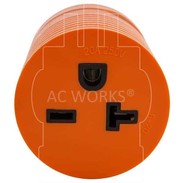 AC Works Adapter L6-20P 20 Amp 250-Volt Plug to NEMA 6-15/20R 15/20 Amp 250-Volt Connector, Orange