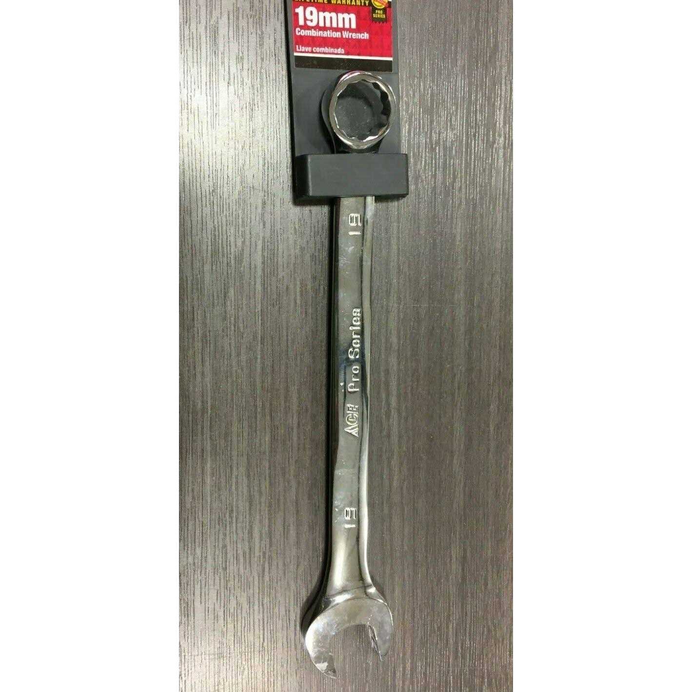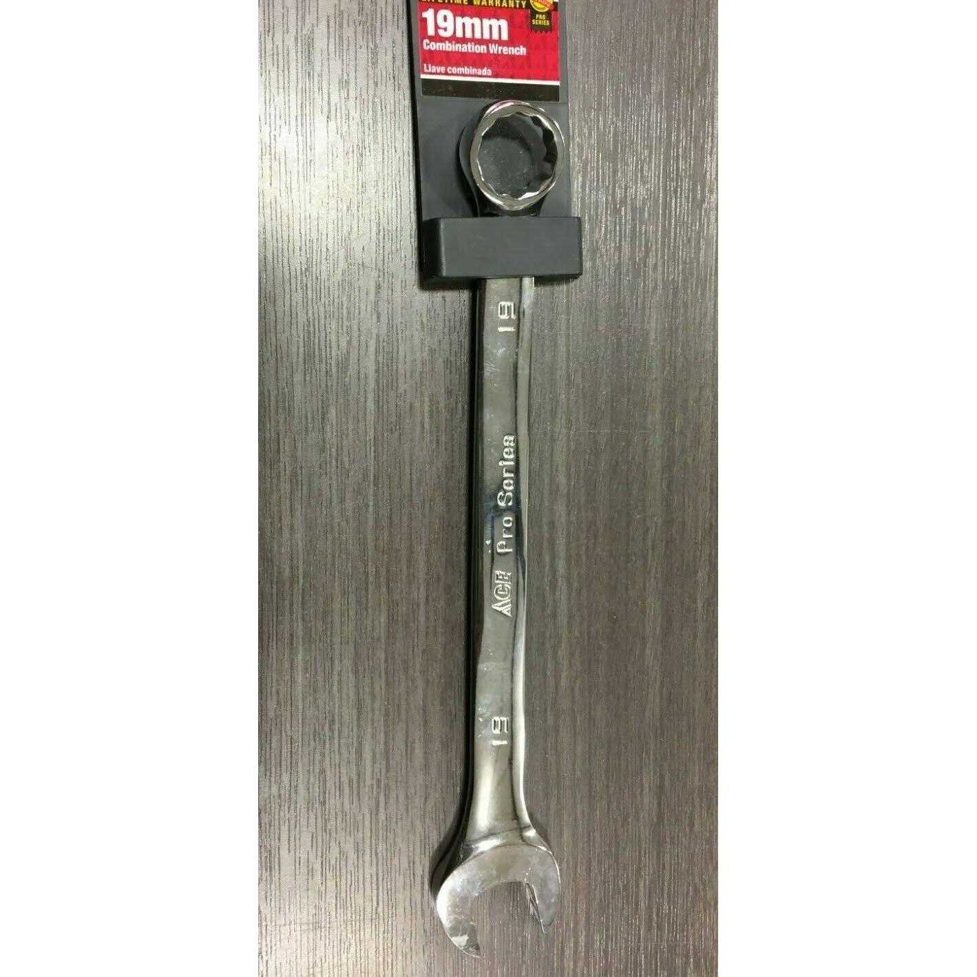 Ace Pro Series 19 mm Metric Alloy Stee *Sub Brand: Pro Series *End 1 Size: 19 *End 2 Size: 19 *Metric or SAE: Metric *Product Type: Combination Wrench *Length: 9.7 in. *Number in Package: 1 pc. *Packaging Type: Carded *Material: Alloy Steel *Ratcheting: No *Color: Silver