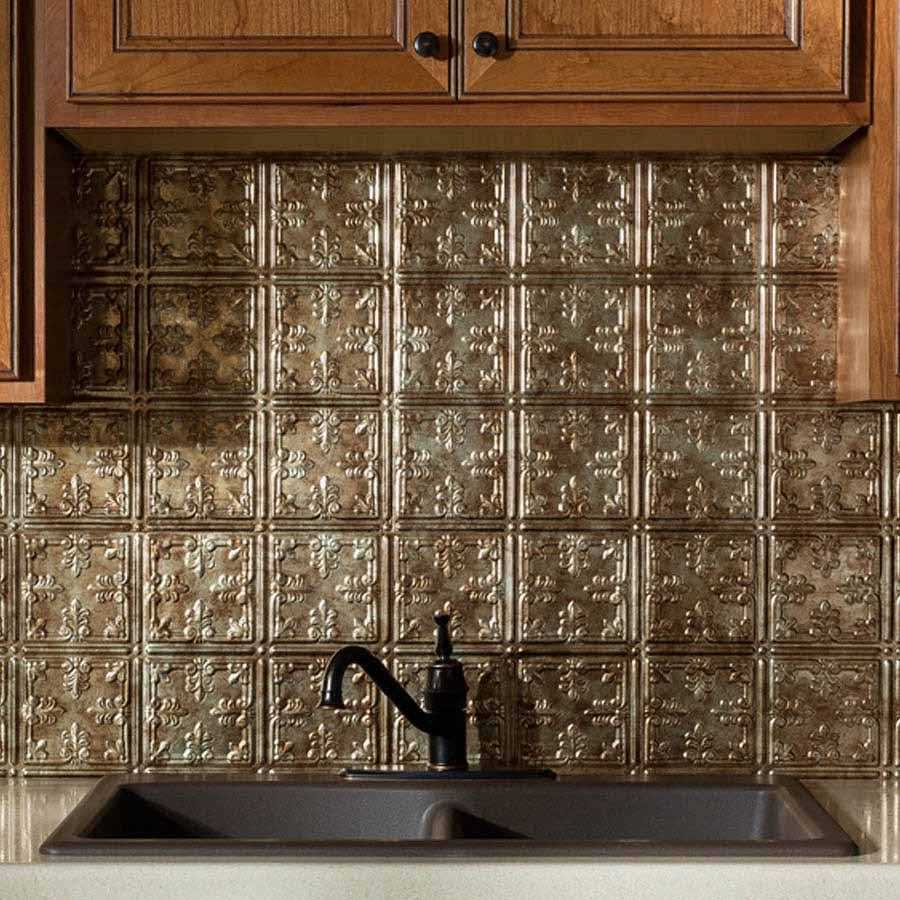 Fasade 18in x 24in Traditional 10 Bermuda Bronze Backsplash Panel 5pk, Size: 5 Pack