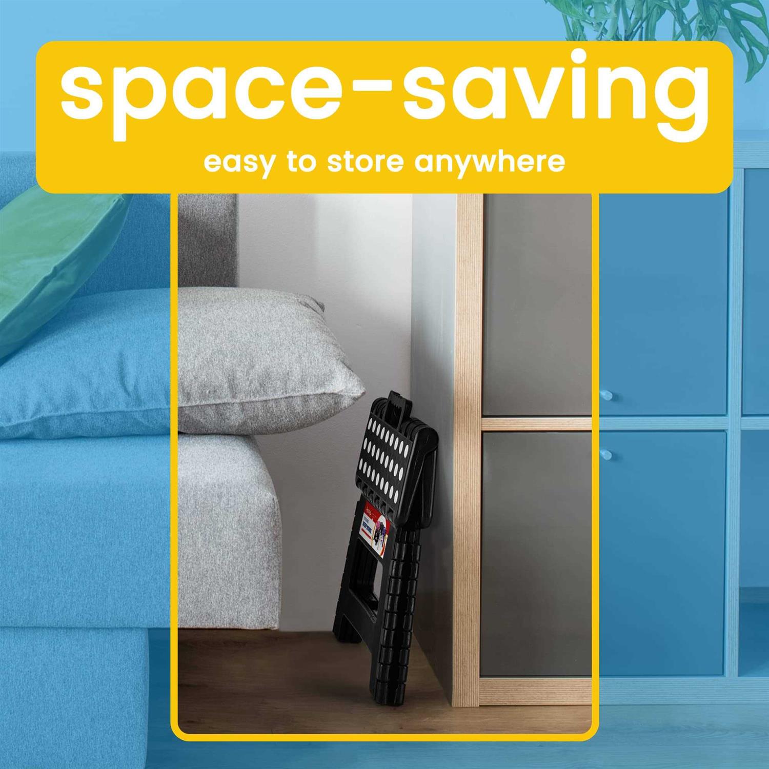 PREMIUM QUALITY – Manufactured to highest standards, made of tough & durable heavy duty plastic for long lasting durability. Our folding step stool has been approved by EN 14183 Certificate, all products are 100% qualified factory test. CARRYING HANDLE – Ergonomic carrying handle is designed for easy folding and carrying. Just lift the handle, it will fold easily and quickly in a split second with only one hand. The step stool’s handle magically appears when the stool is folded flat. Allowing you comfortably carry it around so they can place it where they need it. Four round corner super safe protect your body from clashing. All of these design is put you safe first. ANTI SLIP – Special rubber dots on the surface and anti-slip black rubber strap on each foot for maximum foot grip and gives amazing comfort, preventing slippage. Unique, grip-dot textured surface makes the folding step stool safe for everyone. This safety features making the step stool great for multipurpose uses i.e. kitchen, bathroom, dining room, office, garden, camping, fishing and more. PROPER USE – The maximum load capacity of the folding step is 300 pounds, which is mainly used for indoor sitting. The step stool must be used in dry and flat surface. Mustn’t place the product in the environment above 30°C and below-5°C more than 5 hours. Compact, lightweight & portable Easy carry handle and folds easily for storage Unique stop gap safety feature prevents squashing when folded Great furniture stools for the home, kitchen, bathroom, garden and outdoors Small & lightweight makes it truly portable