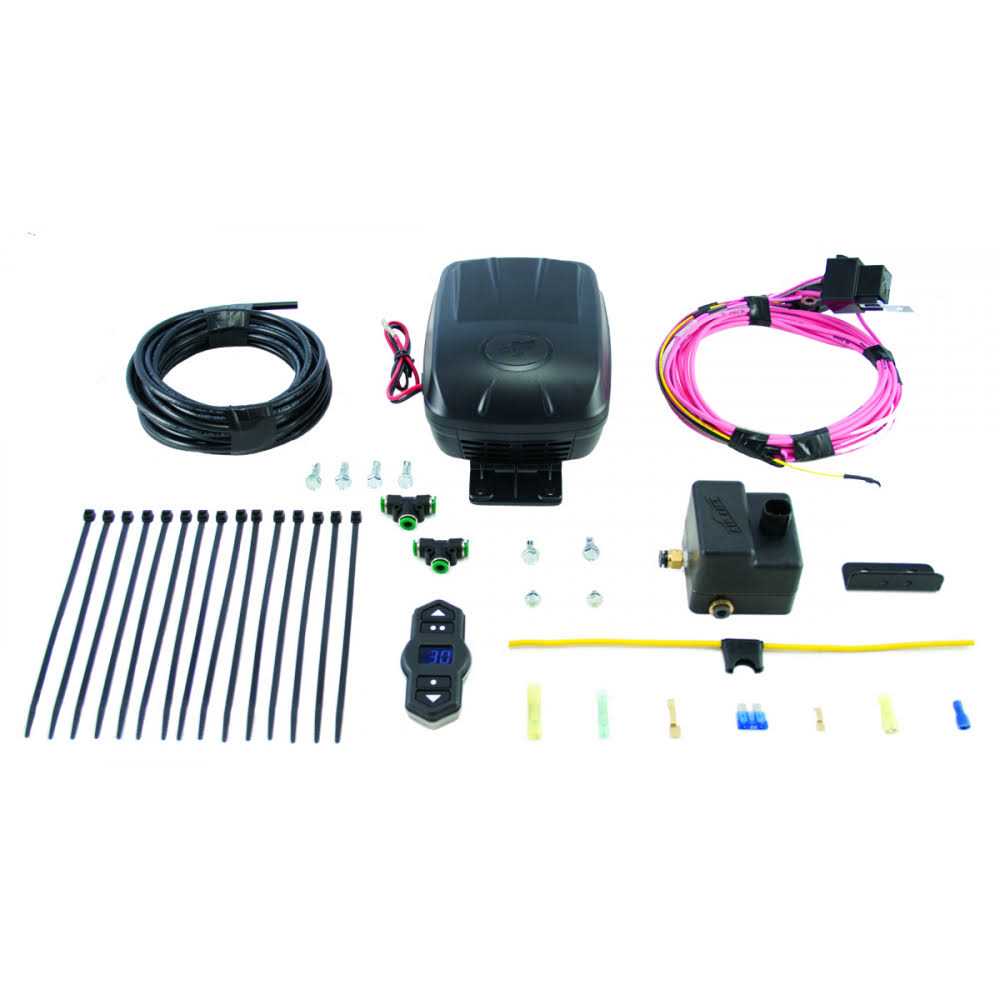 Wireless One – WirelessOne puts the power in your hands – literally. Whether it’s with the easy-to-read handheld controller or the free mobile app, you can inflate or deflate your air spring system with one touch. WirelessOne is a single-path system, meaning both air springs will be inflated or deflated to the same pressure. This is ideal for vehicles carrying loads that are equally distributed left-to-right. The controller and app are both programmable with user-defined presets, so WirelessOne can remember your frequently used pressures. The redesigned WirelessOne system is easier to install than ever, with a standard-duty air compressor and a small manifold. There’s no running air line inside the cab or fiddling with fuzes, just a simple battery hook-up. With common mechanics tools, the system installs in only a few hours.