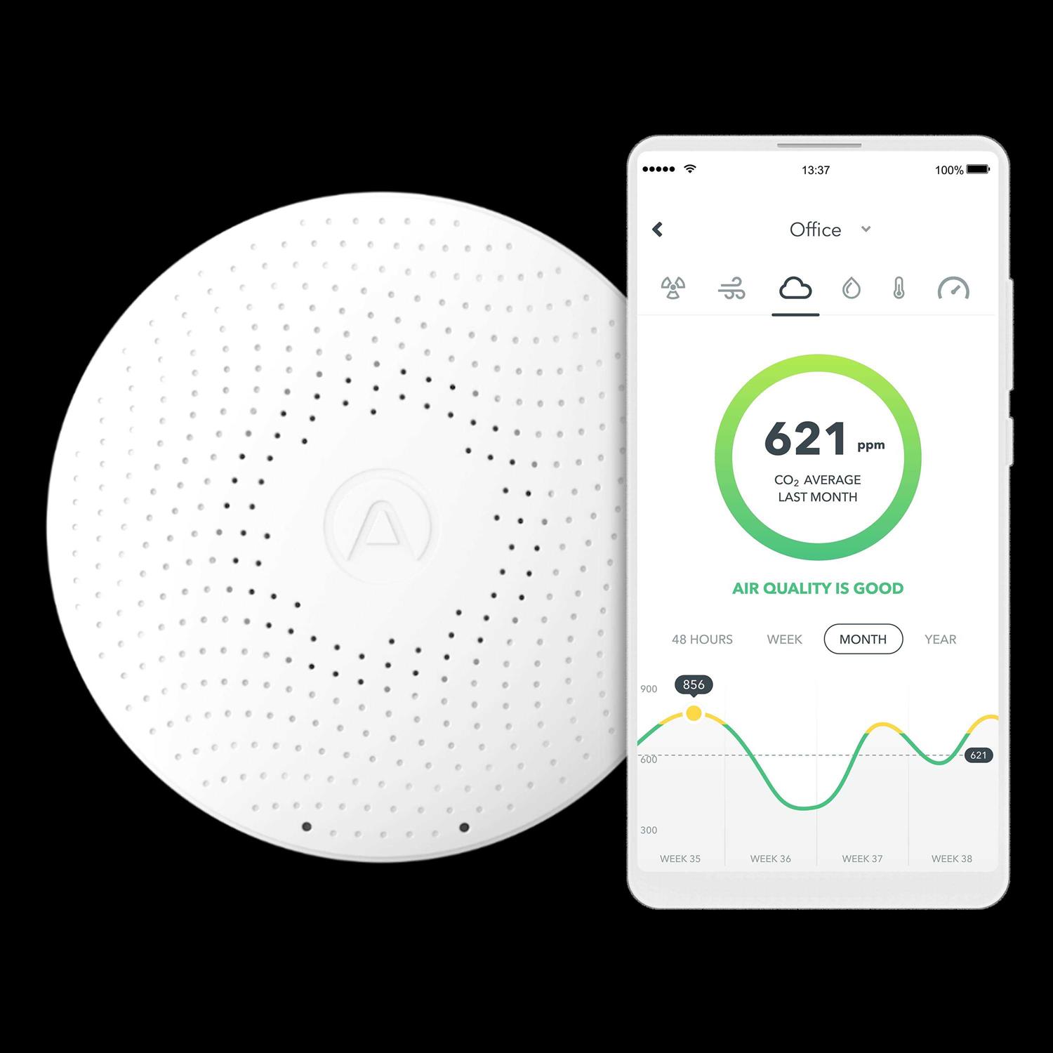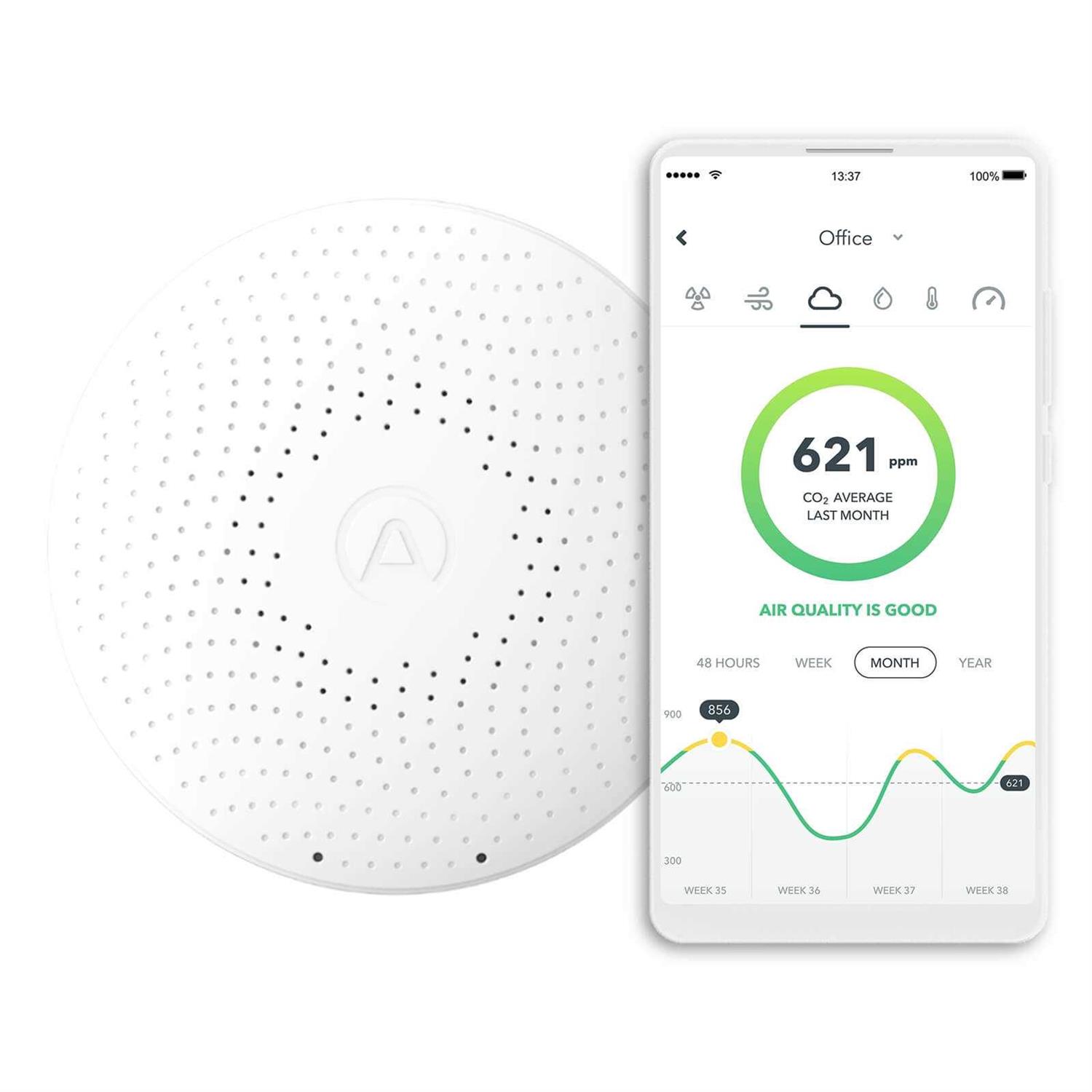 - Long battery life lasts up to 16 months with a Bluetooth connection and up to 18 months with an Airthings SmartLink connection