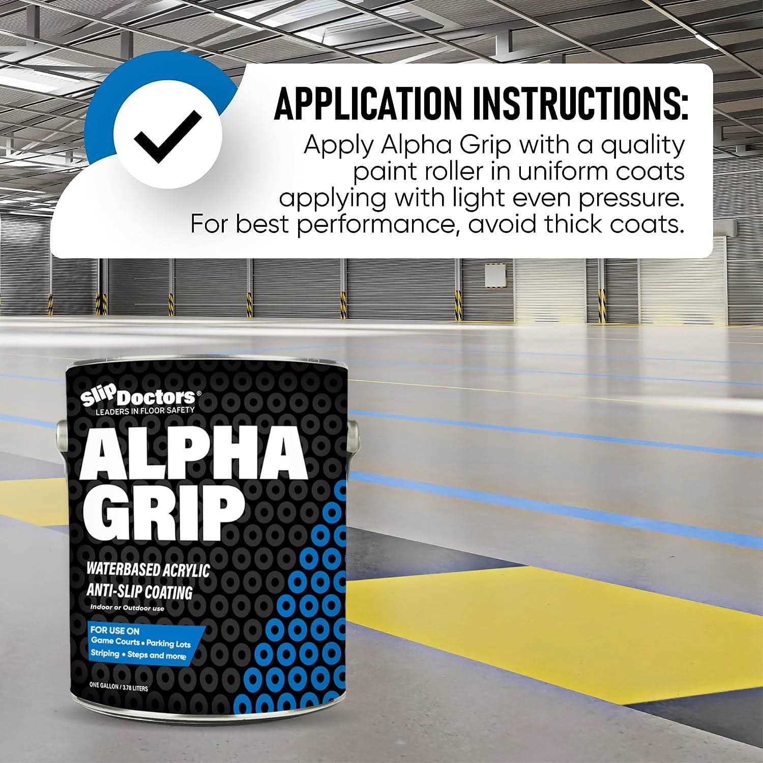 - Alpha Grip is an eco-friendly waterborne highly durable non-slip paint that can be used on concrete and asphalt and stone areas.