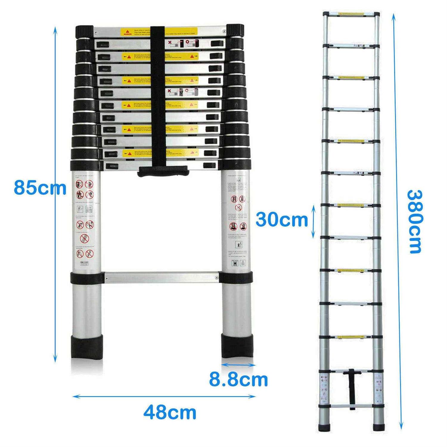 Aluminum Telescopic Ladder 12FT Extension Ladder Multi Purpose Anti-Slip Rubber Feet Ladder for Clean Household Daily Decorate Party Replace The