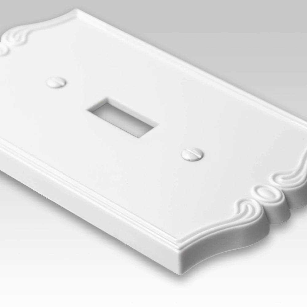 Manufactured by Amerelle, the leader in decorative wall plates and hardware. Made from high quality, beautiful Composite, this stylish wall plate does more than just cover electrical boxes, adding a simple elegance to your decor. Decorating with wall plates is an easy and inexpensive way to make an immediate impact in your home. They provide a charming upgrade to your standard plastic ones by adding a refined, decorative accent to any room in your house. Color: White.