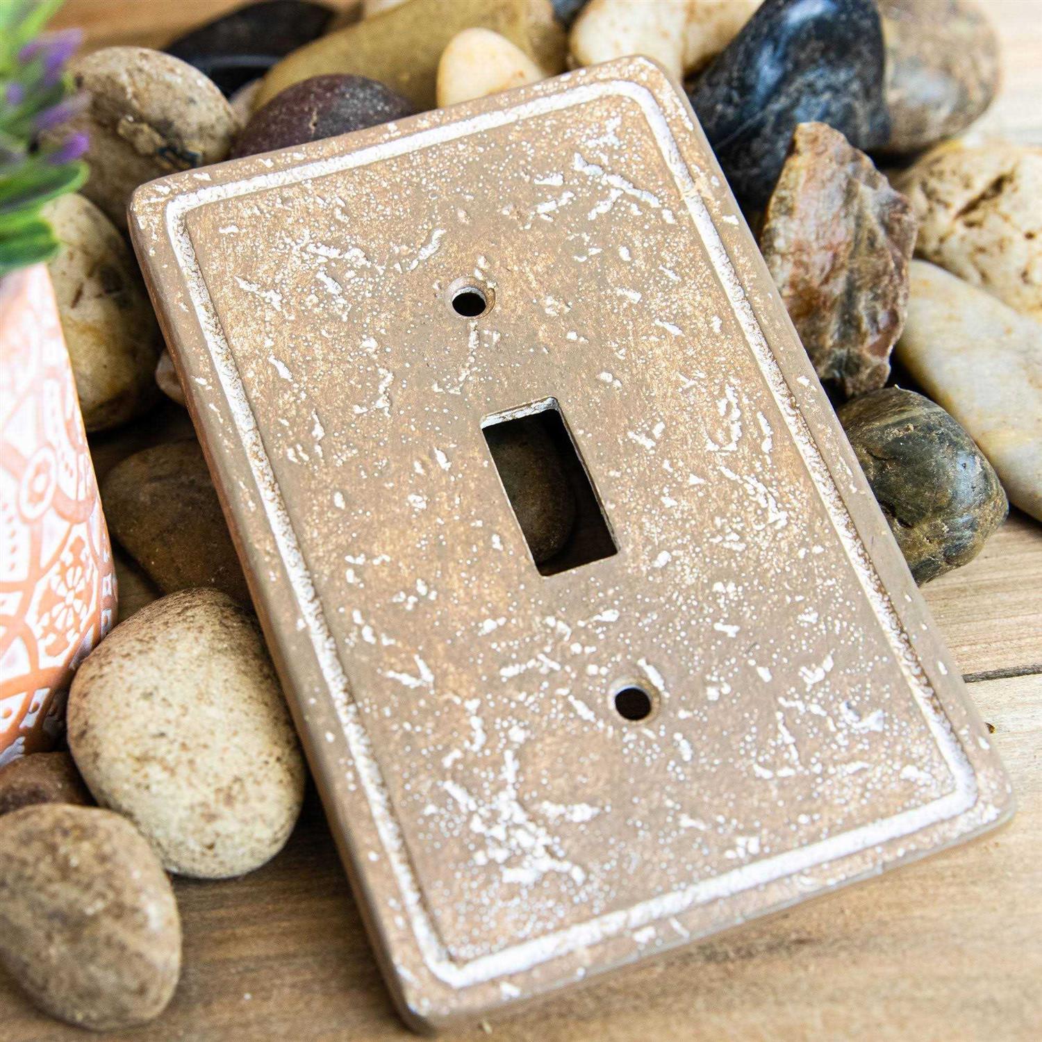 Amerelle 8345da Faux Slate Resin Wallplate, 1 Duplex, Almond