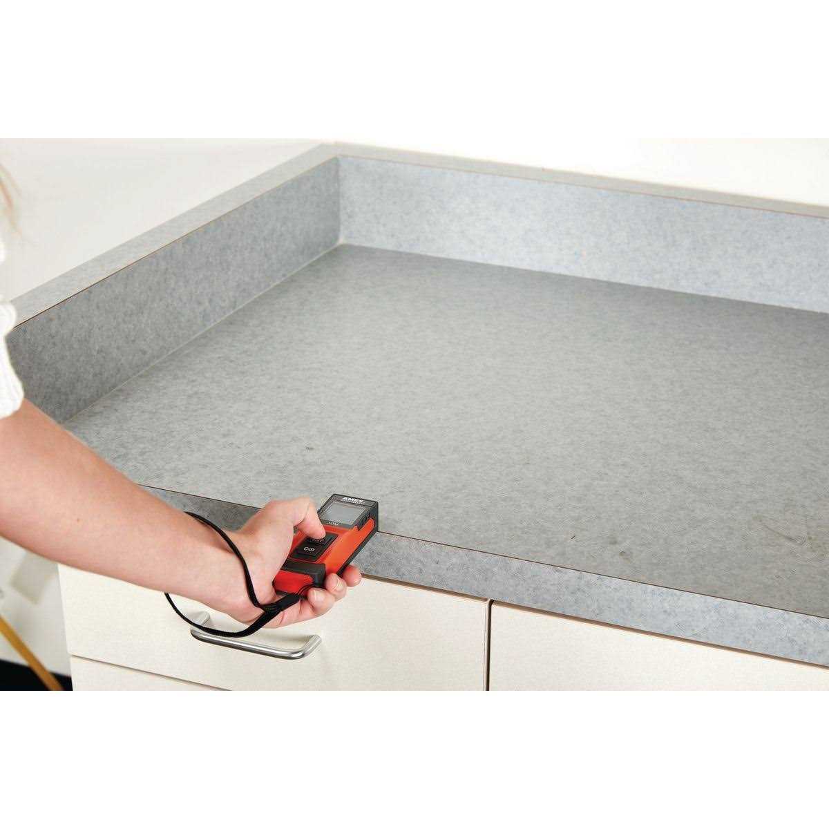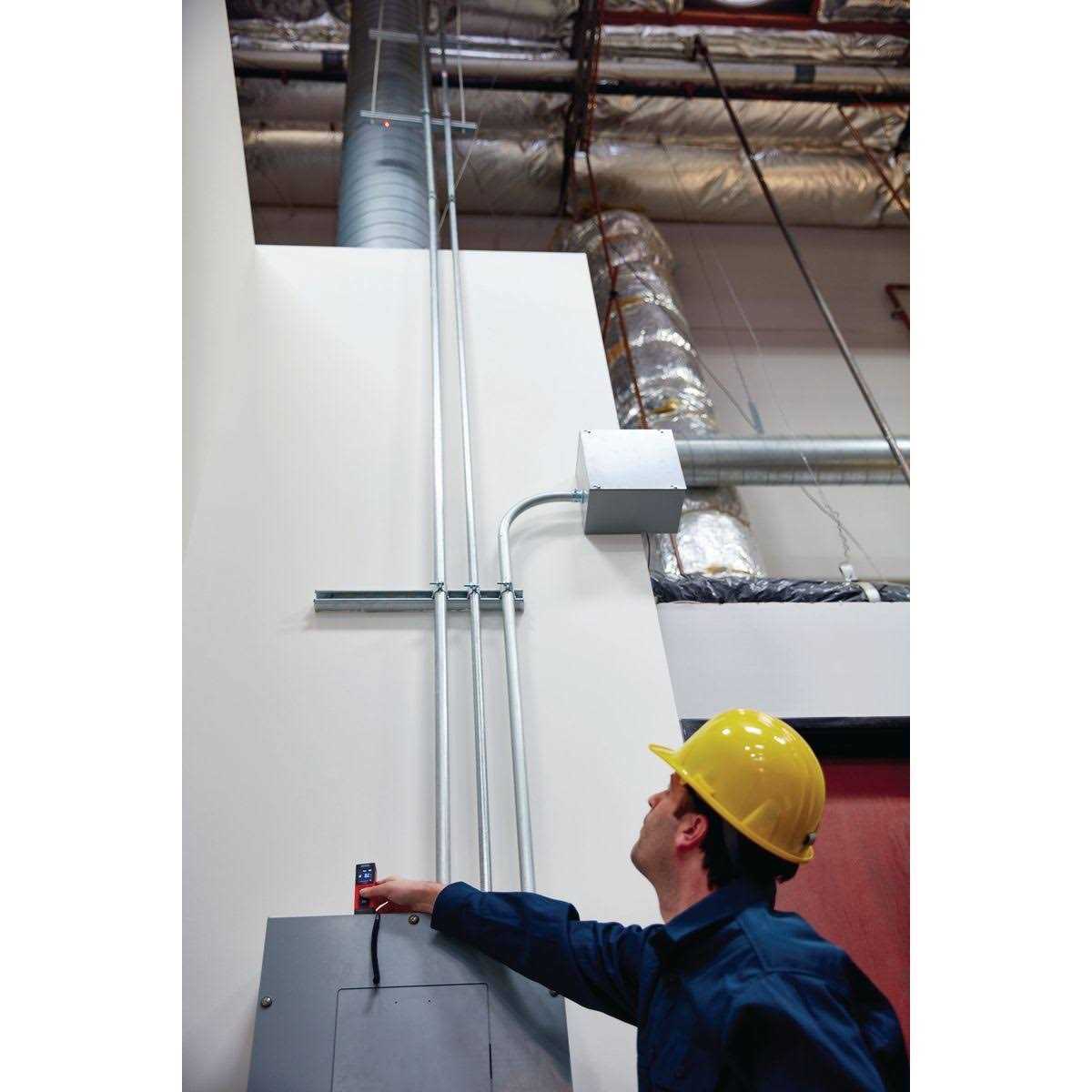 This laser distance meter takes measurements up to 100 ft. at the push of a button. Simply aim the unit and press the button, then get the distance on the easy-to-read display.