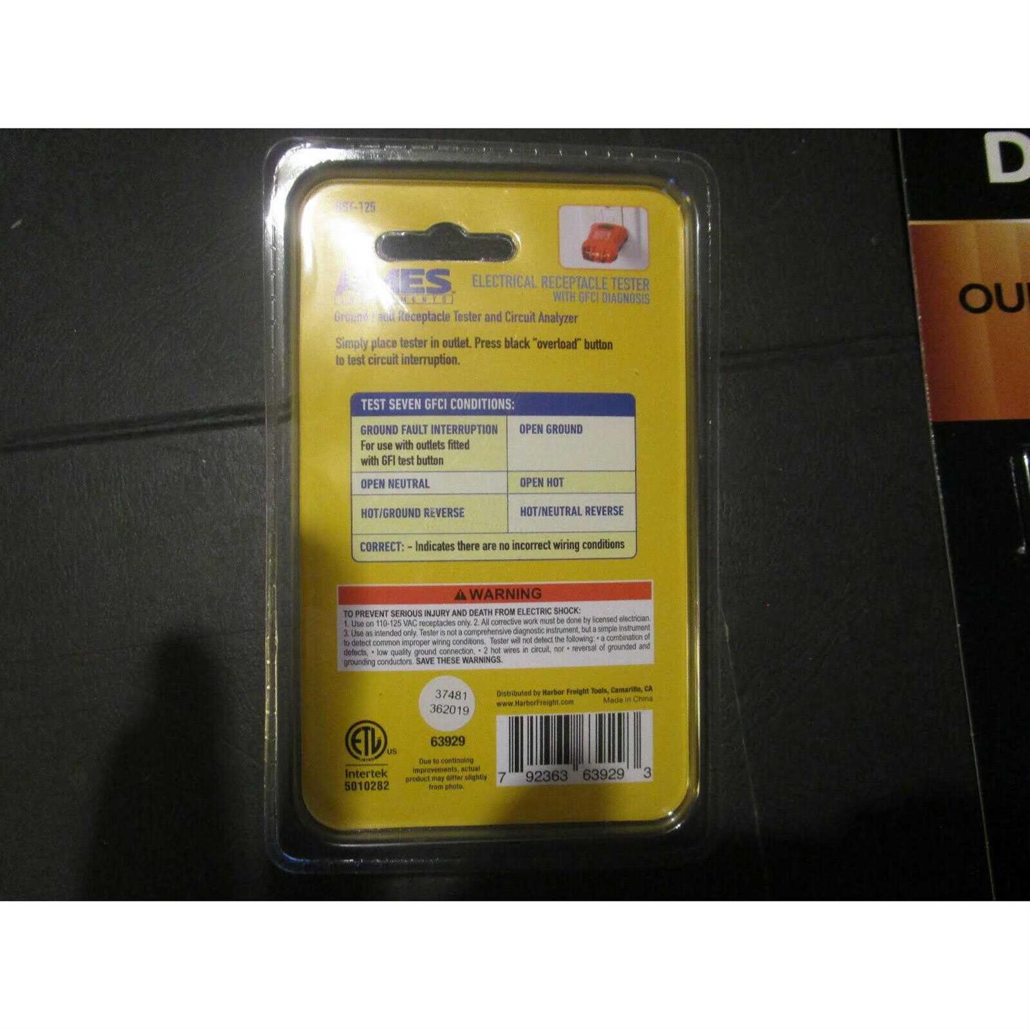 The AMES INSTRUMENTS Electrical Receptacle Tester checks GFCI outlets for proper operation and checks for seven wiring conditions overall. Simply place tester in outlet. Press black “overload” button to test circuit interruption.