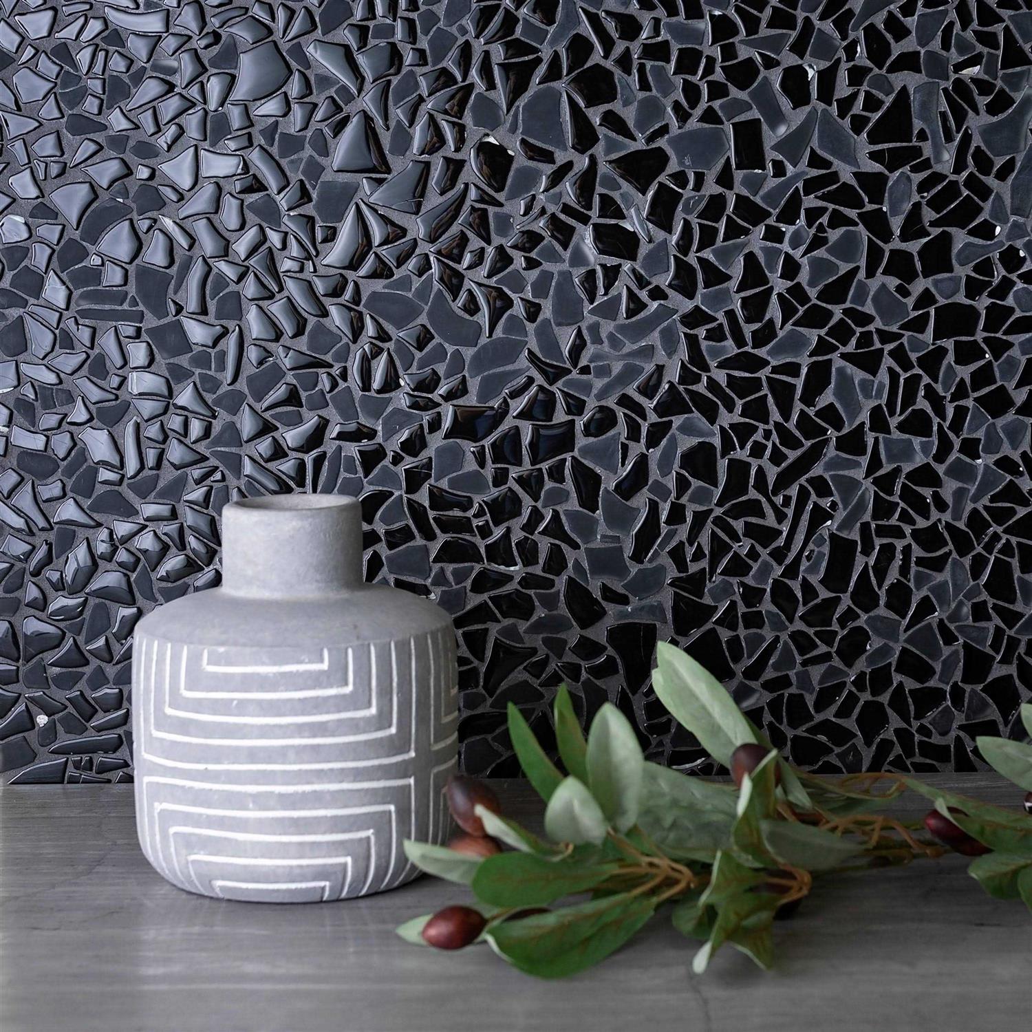 Apollo Tile Black 11.8 in. x 11.8 in. Pebble Polished and Honed Glass Mosaic Tile (4.83 Sq. ft./Case)