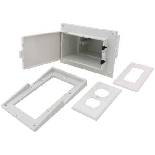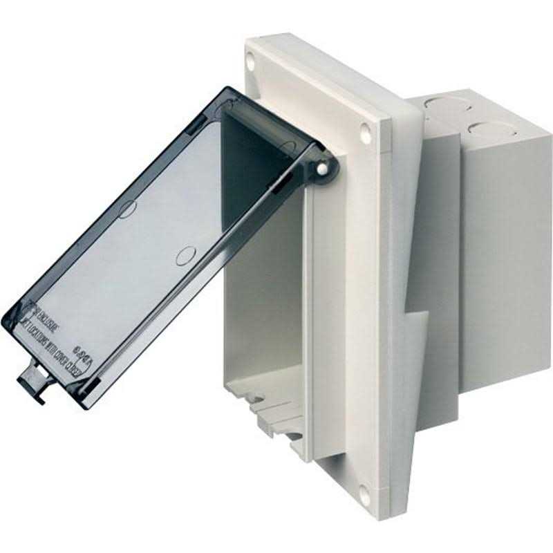 - 22.0 cu. inch recessed electrical box with weatherproof-in-use extra-duty cover for existing siding construction. No Gaskets Required.