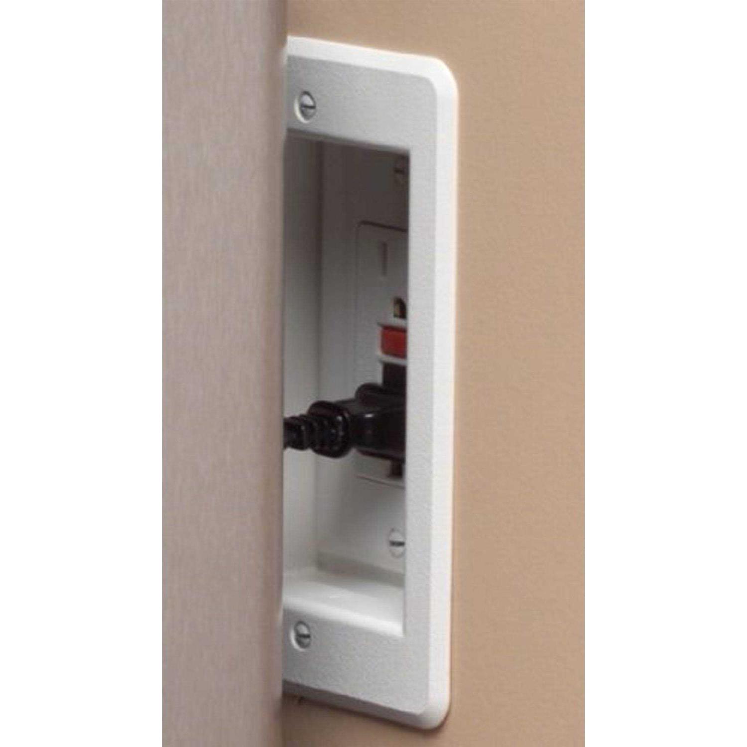 Arlingtons recessed non-metallic IN BOX for indoor use allows plasma and LCD TVs to mount flush against the wall. Great for furniture or countertop items like coffee makers or microwave ovens too. Its available in one- or two-gang styles in black and white for power or low voltage applications in new construction or old work. Using the supplied separator with the two-gang style allows you to install one power and one low-voltage device in the box.