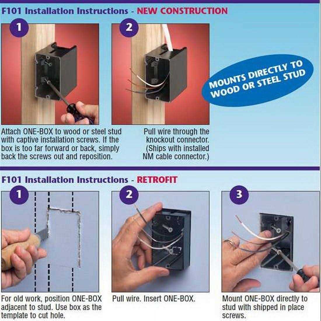 It has capacity of 40-Cubic-Inch. Screw mountable box is suitable for both power and low-voltage applications. It mounts directly to a wood or steel stud for a secure installation. Box is UL listed and CSA certified.