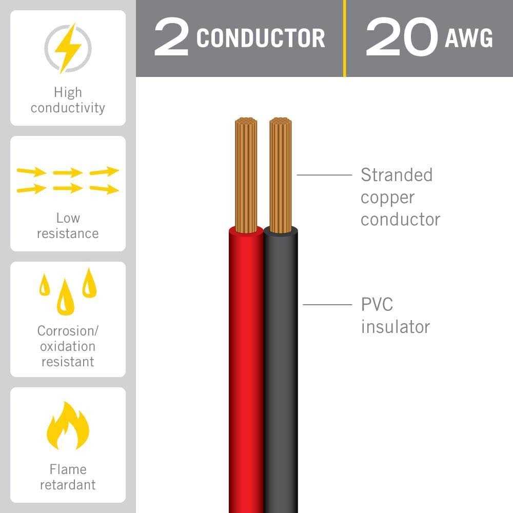 Armacost Lighting 24 ft. 20 AWAG/2C Red/Black Flat Ribbon Cable