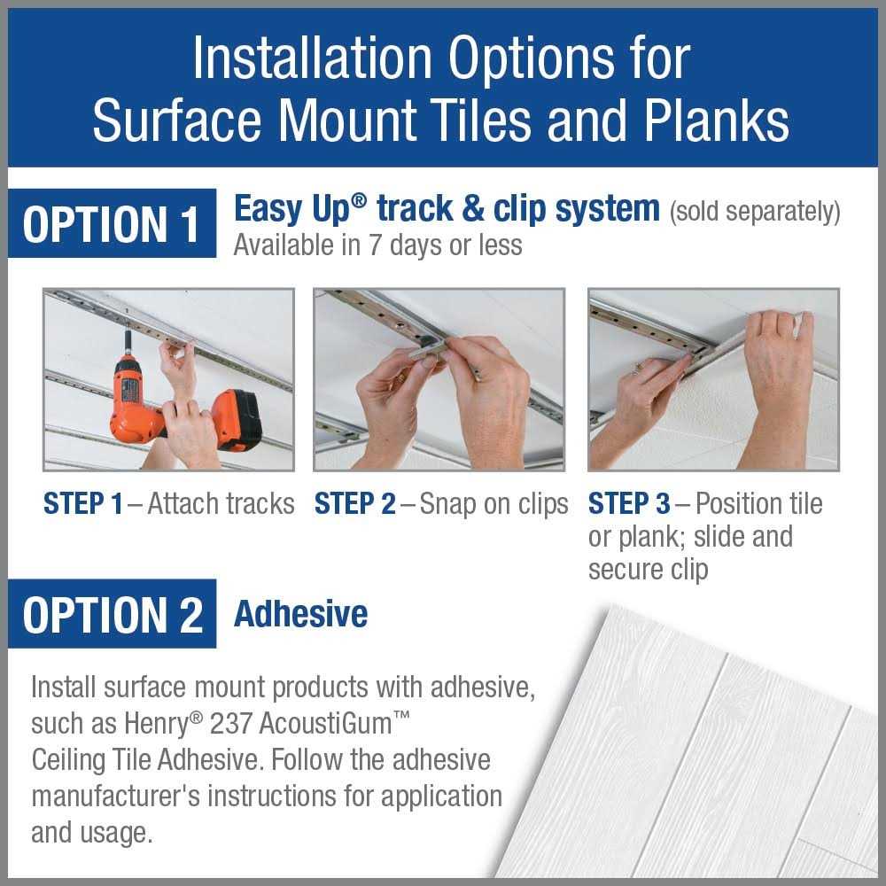 - Great for covering up damaged drywall, plaster or popcorn ceilings