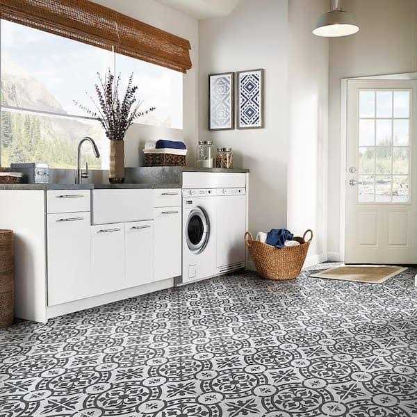 Armstrong Flooring Universal Black and White 2 MIL x 12 in. W x 12 in. L Peel and Stick Water Resistant Vinyl Tile Flooring
