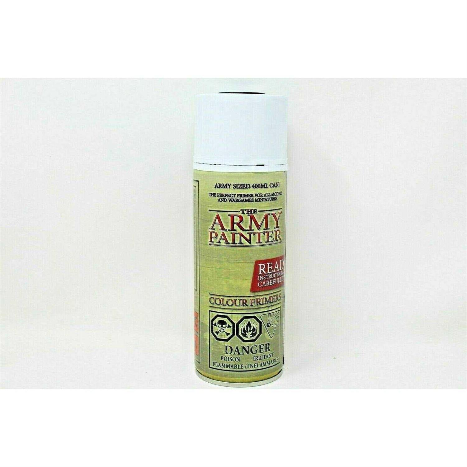 The Army Painter Colour Primer 3001 400ml Matt Black Primer Spray Paint is one of many high-quality coloured primer sprays to choose from in the Army Painter Colour Primers range. Quite simply the best Black Spray on the market. Very matt and with a superior coverage – leaving the miniatures in a perfect condition for applying coats of paints. Remember to always check our video tutorials on how to use Colour Primers. Saves time painting – Prime your model with your chosen base colour Precision nozzle and fast drying acrylic primer = Perfect coverage! 24 Colours, with a 100% matching Warpaint Leaves every detail on the miniature in excellent condition. Army Painter Colour Primer Sprays are a unique combination of a primer and a base coat in one. Featuring a unique formula that works specifically well on metal, plastic, and resin miniatures. These Colour Primers leave a perfect matt finish, so paint adheres better than the standard sprays on the market. Featuring super-fine, heavily pigmented paint, and a specially-designed nozzle – The Army Painter Colour Primers ensure that you get excellent coverage without obscuring the fine details on your miniature. Save time at the hobby desk and Get More Time for Gaming with Colour Primers. Instead of applying a base coat by hand, simply pick the most dominant colour on your miniature or army and spray away.