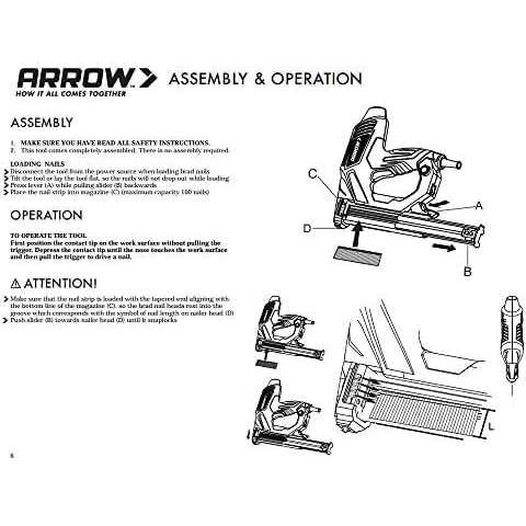 The Arrow 1-1/4 Nail Gun makes any small construction job quicker and easier. Ideal for general wood repairs, trim, and lattice work, the Arrow 1-1/4 Nail Gun features an adjustable depth-control knob that allows the operator to set the correct amount of power for any type of job. The comfortable, soft-grip handle reduces hand fatigue from repeat use, and the six-foot power cord allows more freedom to move around while working. Designed to withstand the demands of any jobsite, the oversized trigger allows the operator easy access for harder to reach areas. With an adjustable impact-control nozzle and a convenient quick-release magazine, the Arrow 1-1/4 Nail Gun is built for speed and convenience.