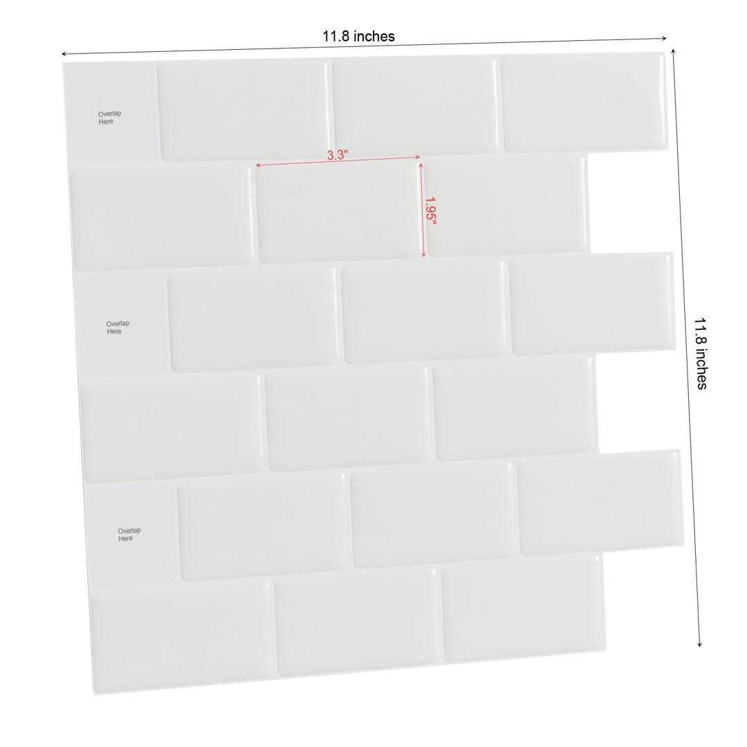Art3d peel and stick tiles are smart and unique products that will simplify your life. The tiles can be easily installed directly over existing panels or smooth surface. Especially designed for kitchen backsplashes and bathroom backsplashes, the tiles are resistant to the heat of stove tops and the humidity of bathrooms. Surface Requirement: The tile need to be installed over clean and sleek surface. Please note that rough surfaces such as porous wood, embossed ceramic tiles or textured wallpaper are not suitable to install; NOT all the latex/repainted walls can be installed directly, for latex or repainted wall, the 3M Spray Adhesive is recommended. Tiles should not directly contact with flames, steam or submerse in water. Do not install tiles less than 16 in. away from the top of stove. The new arrived peel and stick wall tiles may have little gel smell. The smell will dispel in 2-3 days. If you want to remove the tile, you could use a hair dryer to warm up the adhesive and pull softly starting with the corners. Then use a cleaning product to remove the excess glue left by the peel and stick tiles. Color: White.