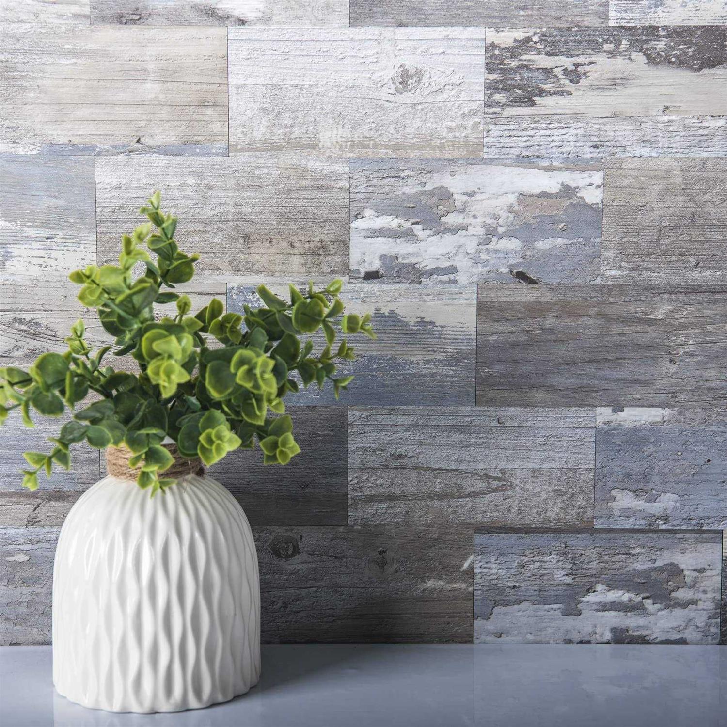 Art3d 102-Piece Peel and Stick Tile Backsplash for Kitchen Bathroom, 3in. x 6in. Stick on Subway Tile Distressed Wood Plank
