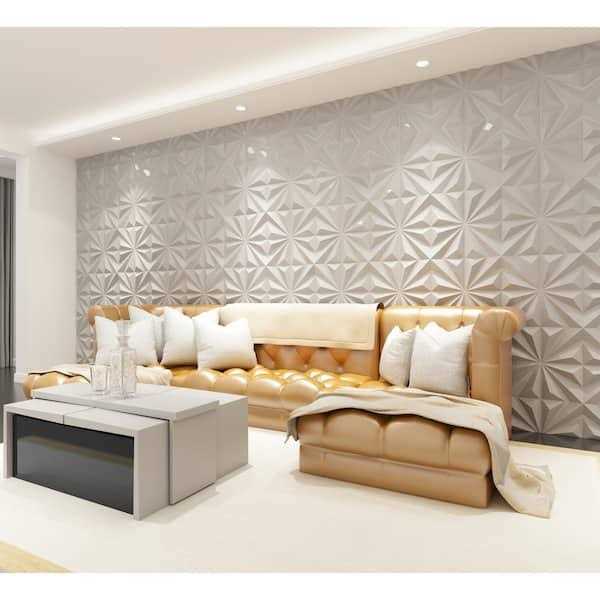 Art3dwallpanels 19.7 in. x 19.7 in. 32 Sq. ft. White PVC 3D Wall Panel Star Textured for Interior Wall Decor (Pack of 12-Tiles)