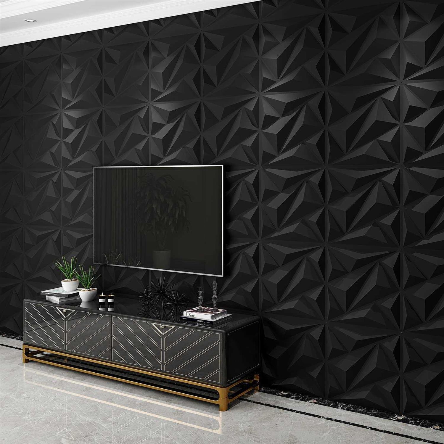 Art3dwallpanels 33 Pack 3D Wall Panel Diamond for Interior Wall dcor PVC Flower Textured Wall Panels for Living Room Lobby Bedroom Hotel Office Black