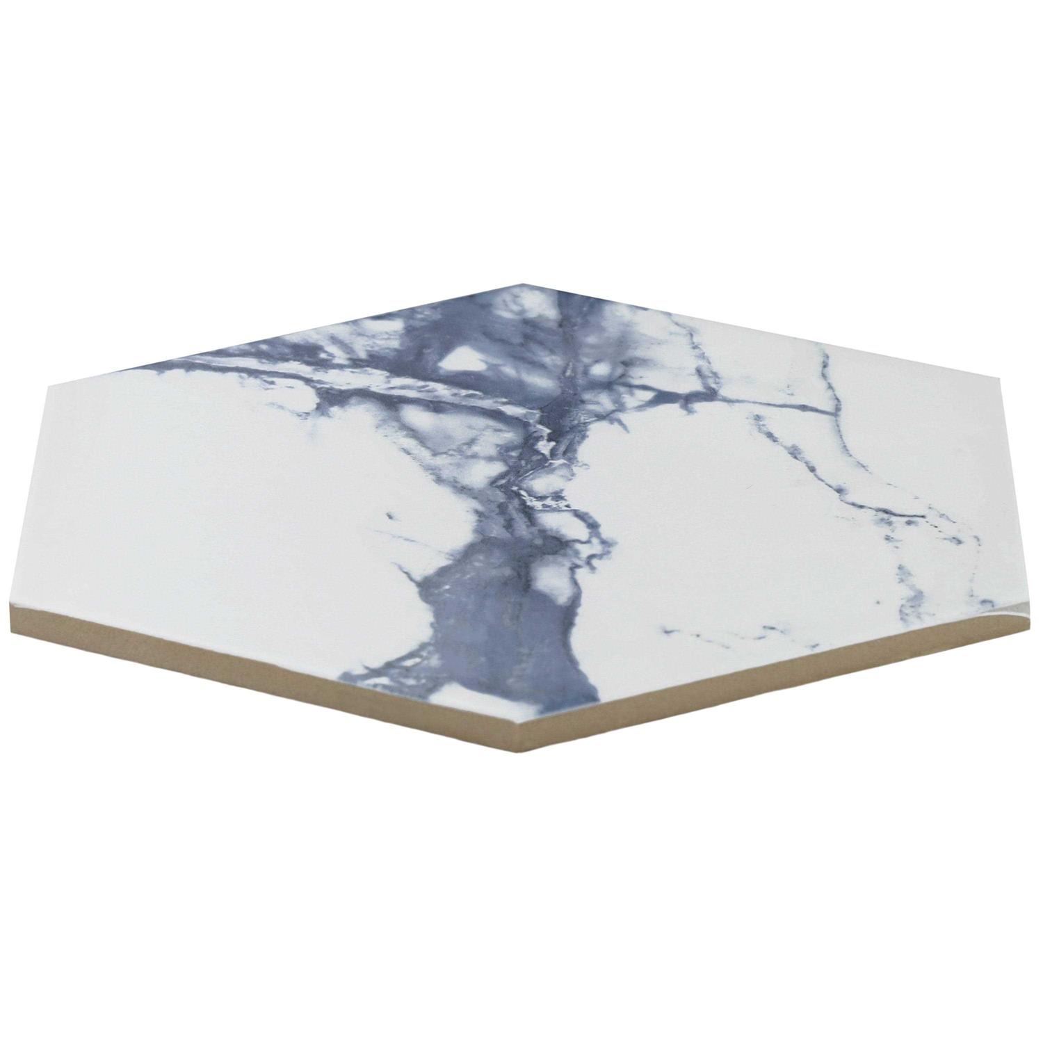 The Macauba and Calacatta Hex Collection optimizes the natural beauty of marble for the modern space using porcelain. Formed into a best-selling 10 in. hexagon format, these marble-look porcelain tiles realistically recreate the bold veining and pattern of two of the most coveted natural stones in the world: Calacatta and Macauba marbles. Blue and gray colorways offer a sophisticated and contemporary iteration of these timeless marbles, creating a bold and impactful look in any space. Suitable for floors, backsplashes, fireplaces, and more, these elegant tiles complete and elevate any style or decor. Color: Azur.