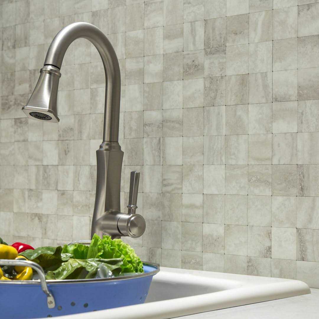 Update your kitchen or bathroom quickly and easily with Aspect Peel & Stick Collage. Aspect Collage tiles are a unique mix of brushed metal and durable composite combined to create an elegant backsplash tile suitable for any room in your house. This eye-catching tile installs easily using Aspect’s Peel & Stick technology – simply peel off the backing and stick! No mortar or grout is necessary making this the perfect DIY product to transform your room in as little as a few hours!
