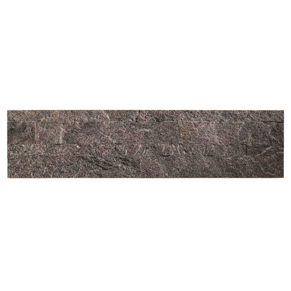 This real stone is a flexible, lightweight, approximately 1/8 inch thick tile backsplash product that offers the DIY homeowner a thin-cut stone option for a fraction of the price of its designer counterpart. Simple peel and stick installation eliminates the need for mortar or grout, and no contractor is necessary. Aspect Stone backsplash tiles are available in a variety of earth-tone natural colors providing endless options for your kitchen backsplash ideas. These backsplash panels can be treated with a stone sealer or impregnator to provide protection in high use areas. Aspect Trims are also available to complete your kitchen backsplash peel and stick project. Aspect Stone is made by starting with a 24 to 36-inch thick slab of natural quarried sedimentary stone. The exposed face is chiseled and cleaned so the remaining surface is smooth, level and the natural pores of the stone have been opened. A proprietary resin liquid is applied to the exposed face and soaks into the stone. After the resin has cured and dried, the application is repeated a number of times in combination with an application of a fiberglass mesh. After the final cure period, the resin and fiberglass mesh form a secure bond with the stone. A skilled stone craftsman then fractures and peels a 1/16-inch thick layer away from the large slab, yielding a thin section of bonded real stone. Using highly accurate automated saws, the layers are cut into various ledge stone sizes and the individual thin pieces are hand applied to a peel and stick foam adhesive. The ledge stone pattern is cut one last time to ensure it is accurate, level and square, to yield the all-natural 6-inch x 24-inch ledge stone panel. The thin layer of the sedimentary stone, cured resin backer and peel and stick foam adhesive combined make a beautiful, real stone product which is flexible yet can be cut with simple shears.