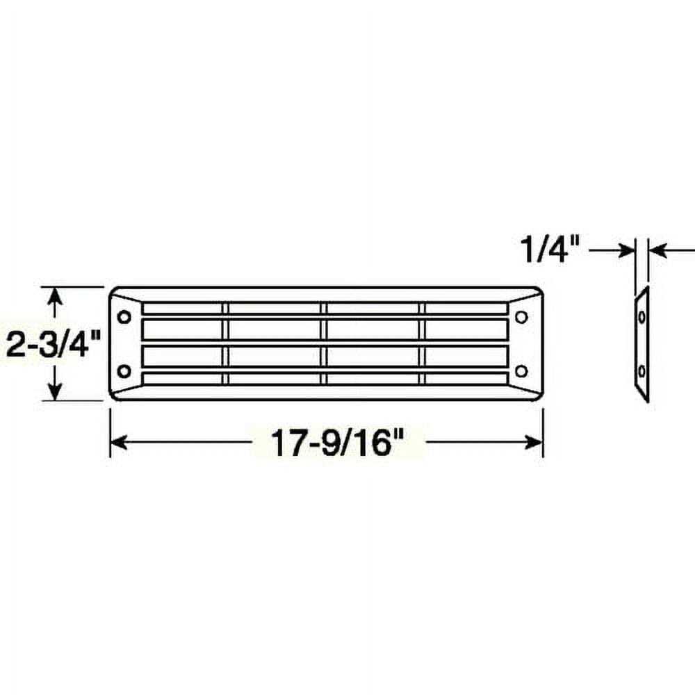 - Dimensions: 17-9/16″ L x 2-3/4″ H x 1/4″ D.