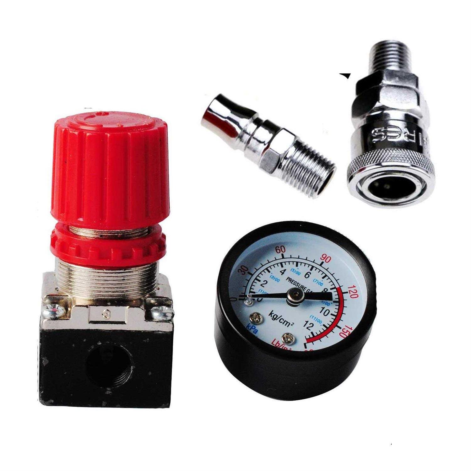 Auto-plaza 3 Way Air Compressor 1/4 Pressure Regulator Gauge 140psi Control Valve
