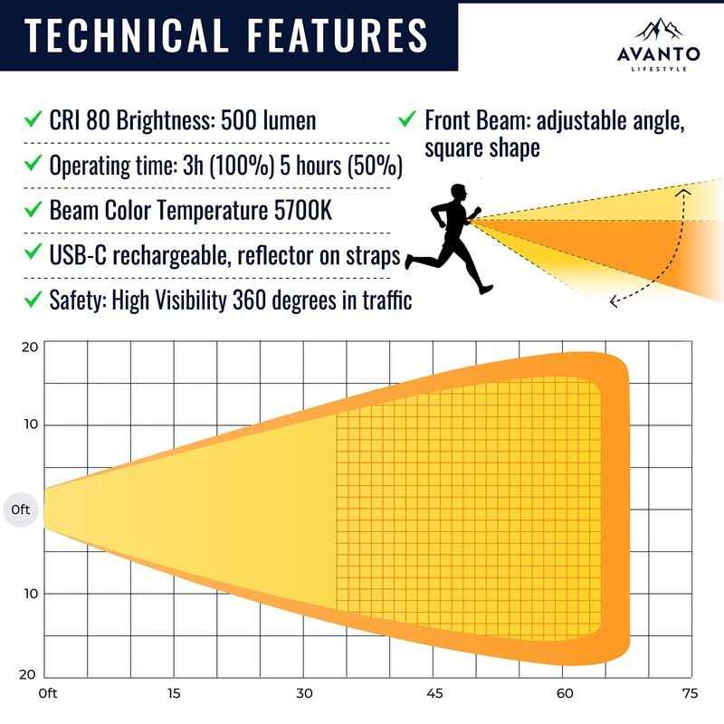 Adjustable,Lightweight Introducing the original AVANTO light, a versatile companion designed to elevate your nighttime running experience. Our waist lights for runners provide exceptional brightness in a compact and lightweight design. Say goodbye to bulky headlamps and embrace the freedom of hands-free running. With our rechargeable running lights, you can go the distance with confidence. Equipped with a powerful running flashlight, you’ll never miss a step even in the darkest conditions. Our night light for walking ensures your safety during nighttime strolls, providing reliable illumination for enhanced visibility. Designed for comfort and convenience, our hands-free flashlight is perfect for night walking or any low-light activity. Experience the best running lights for runners with our LED options. Engineered to deliver superior performance, these lights offer optimal brightness and clarity. Whether you’re running at night or engaging in outdoor activities, our running lights provide the visibility you need. Stay safe and focused with the best running lights available. Our chest light for running at night is a game-changer. With its wearable design, it offers targeted lighting that illuminates your path without obstructing your movements. Designed for both style and functionality, our chest light ensures you stand out while providing ample illumination. Leave traditional headlamps behind and embrace the convenience and comfort of our body flashlight. Be prepared for any adventure with our jogging lights. Trust in our outdoor night running lights to guide your way, keep you safe during your nighttime runs. Push your limits and challenge your comfort zone with confidence. Our range of products, including reflective vests, clip-on lights, and LED chest lights, is designed to enhance your safety and visibility during nighttime activities. Join our community of adventurers and elevate your night runs with AVANTO.