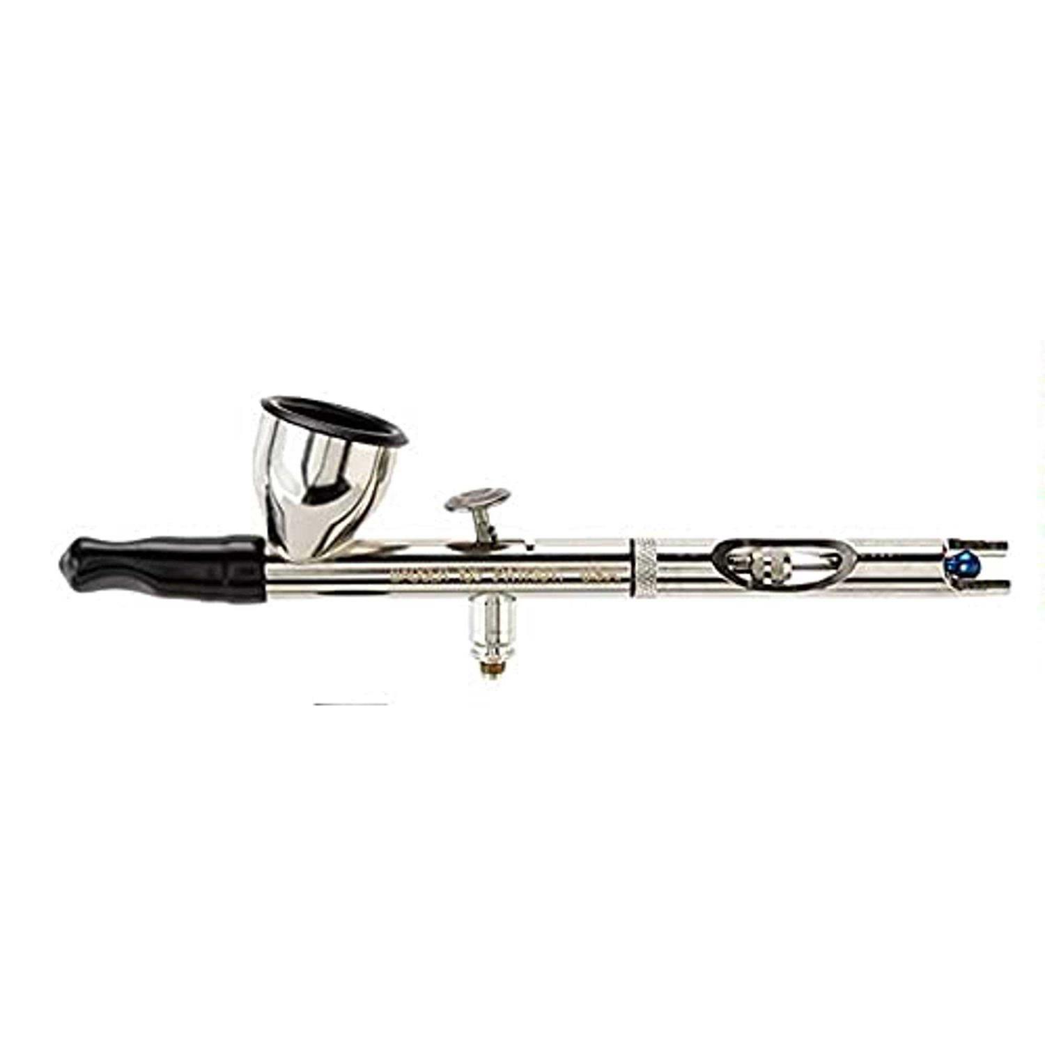 Patriot airbrush dual action, internal mix, gravity feed airbrush has a single needle and single tip configuration so no part changes are required. It has a 1/3 oz. Permanently mounted color cup with a cap. The patriot is a low-maintenance airbrush, easy to clean and simple to change colors and will spray any properly reduced paint or airbrush-ready media. Designed to deliver precise performance and fine line detail, it is ideal for all types of custom art, graphic arts and illustrative work. This airbrush will operate at lower pressure settings, 10-15 psi and is ergonomically balanced for hours of comfortable airbrushing.