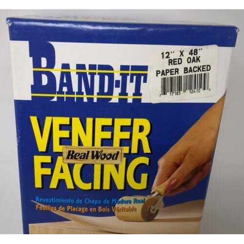 Veneer facing paper back – real wood”band-it” 12 inches x 48 inches finish=red oak Pre-sanded and ready to finish, backed with a resin impregnated paper that prevents splitting. Apply to wood, plywood, particle board, hardboard, even metal. Apply with contact cement.