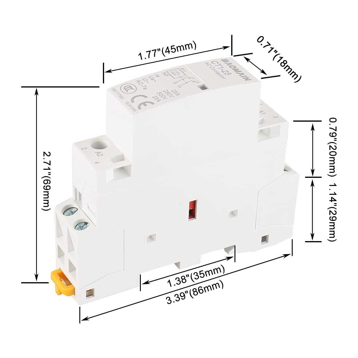 Baomain Ac Contactor Ct1-25 110v 2NO 25a 2 Pole Universal Circuit Control