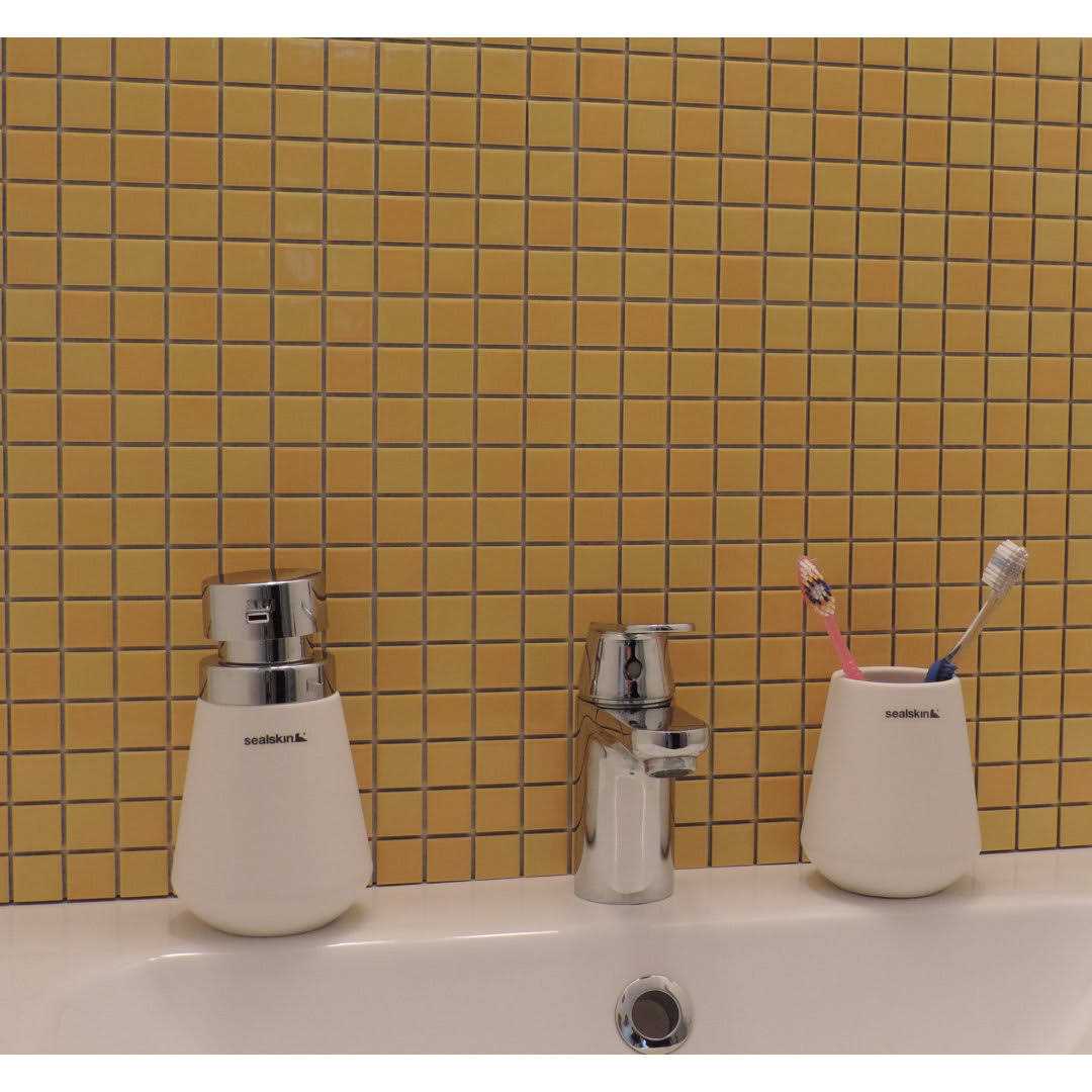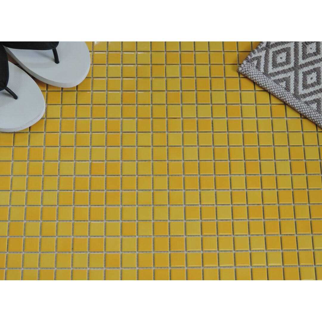 Glazed Porcelain Mosaic Tile Sheet Barcelona 1″x1″ Square Glossy Flamed Yellow, Box 9.7 Sq. ft.