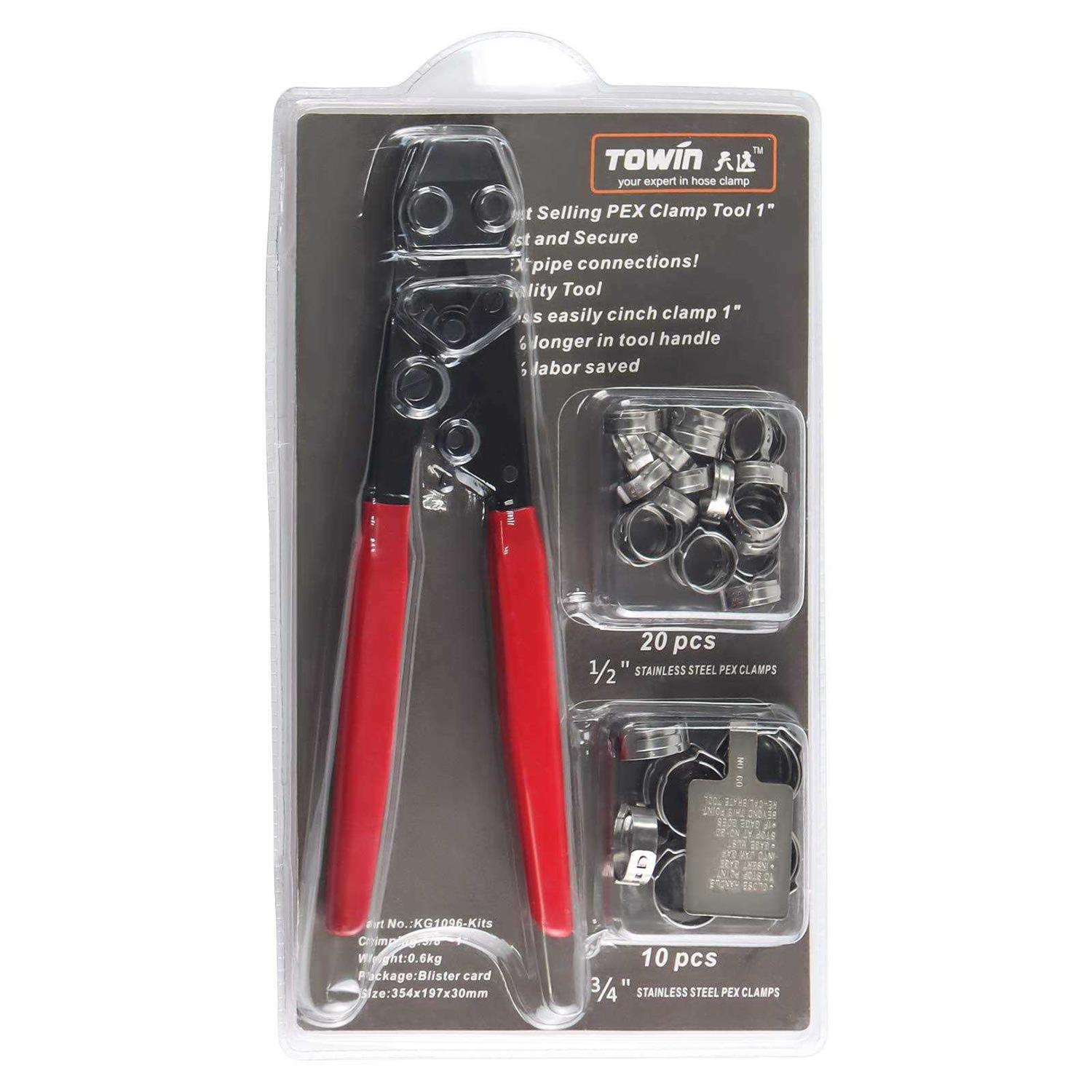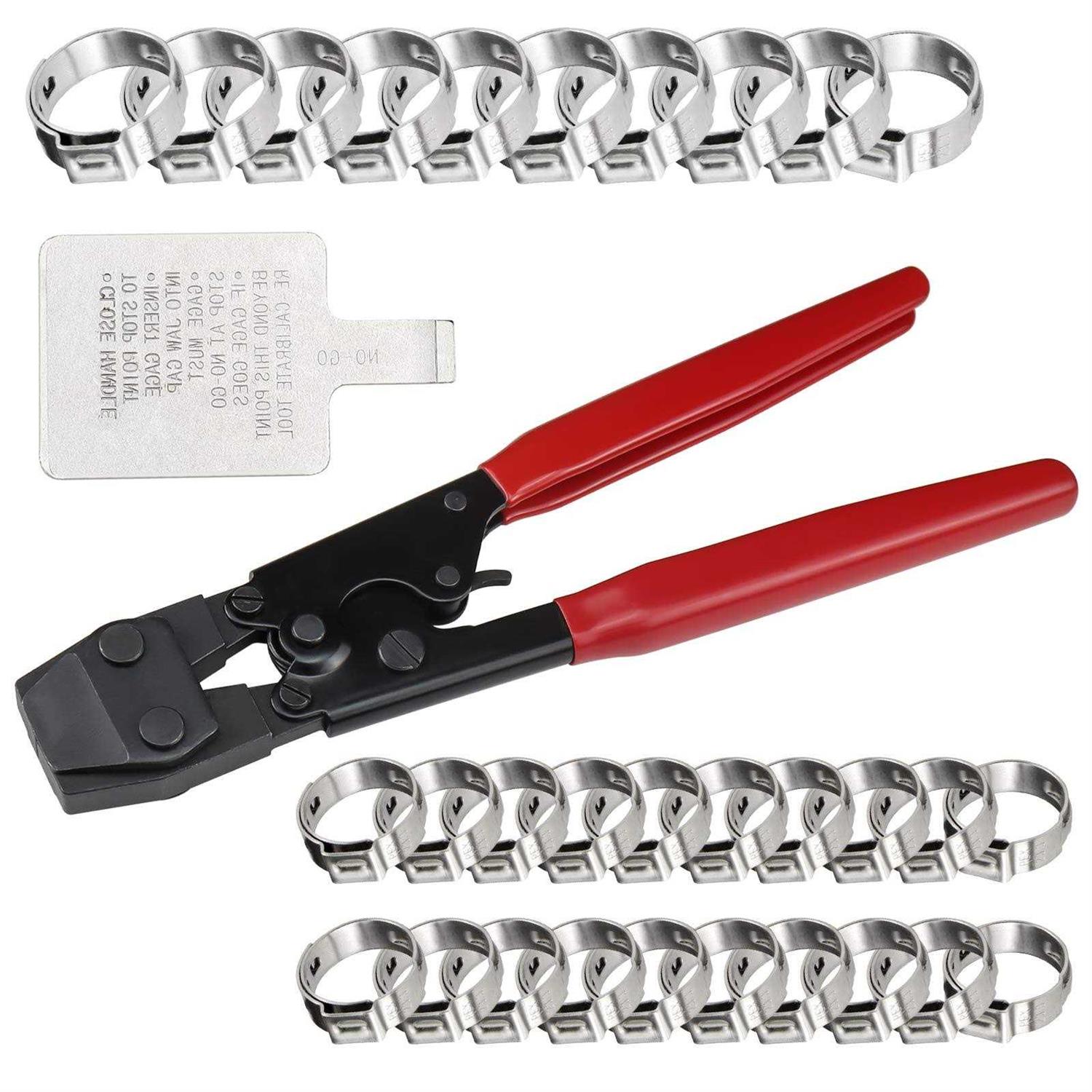 Beaquicy PEX Clamp Cinch Tool Crimping Tool – Include 1 PEX Clamp Cinch Tool Crimping Tool, 20pcs 1/2-Inch Stainless Steel Clamps, 10pcs 3/4-Inch