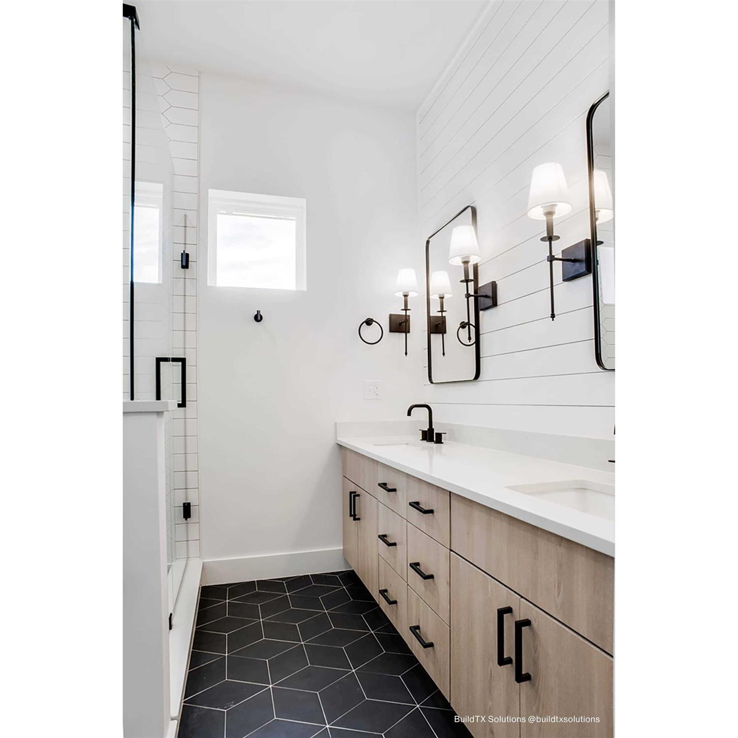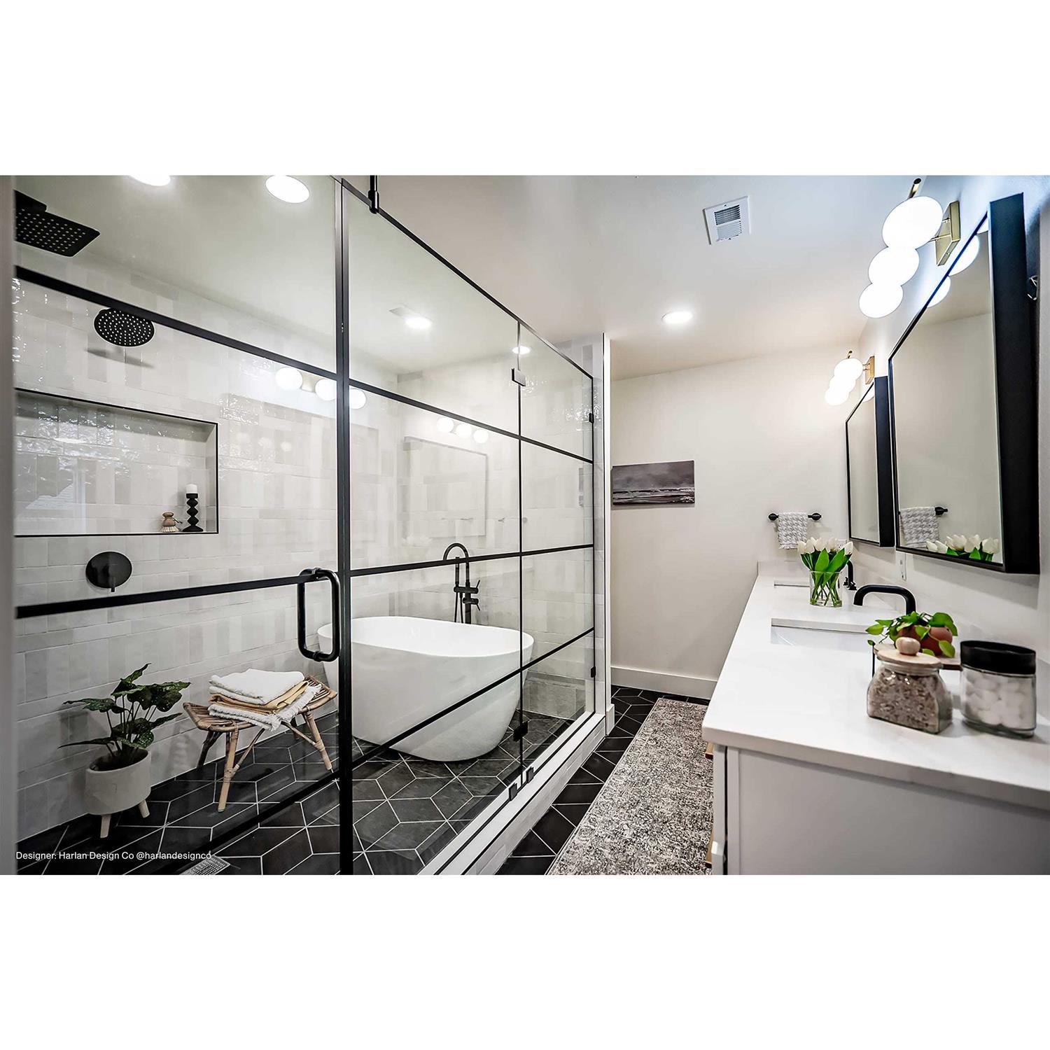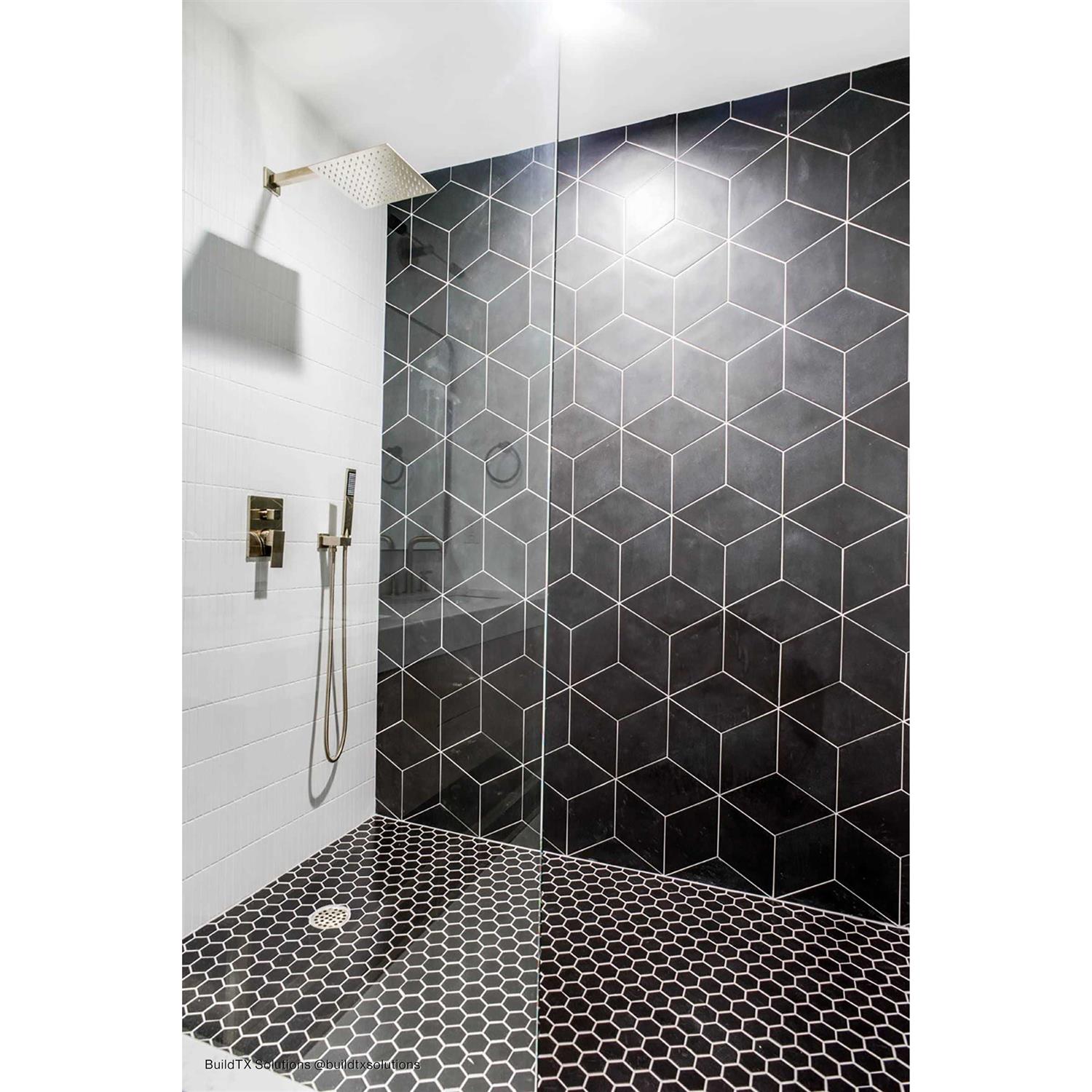 Add geometry to your floors and walls with Allora, an Italian-made matte porcelain tile that comes in three shapes: Rectangle (3”x24”), Rhombus (7.5″x12.75″) and Hexagon (8.5”x10”). The neutral colors of White, Gray and Black blend well with any room style. The hexagon shapes also come in three deco options in Fiore (floral pattern), Stella (star pattern) and Telaio (hexagon pattern). Create a solid-colored look, a complete patterned design, or combine the solids and decos for your own look.