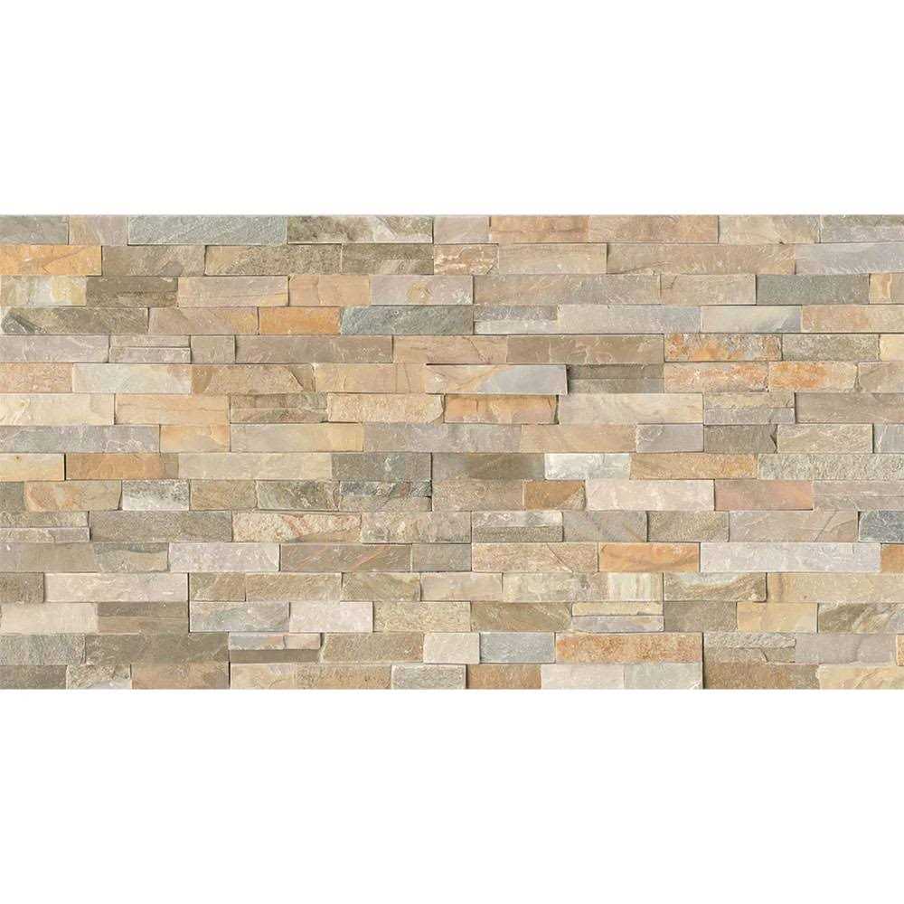 Coverage 5 S/FT, Sold by Box, Length 24 Inch, Width 6 Inch, Thickness 0.38 Inch, Color Beige, Composition Slate, Design Ledger, Surface Textured, Interlocking Edge, Interlocking End, thin set install