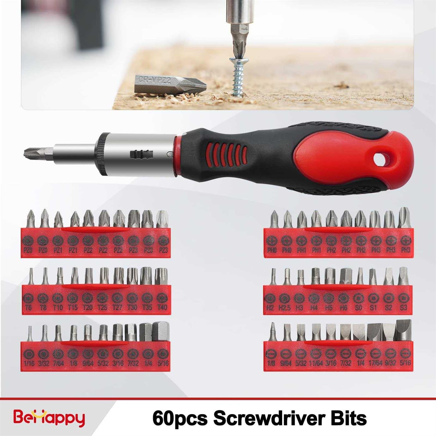 BeHappy 118PCS Magnetic Screwdriver Set Screwdriver Set with Plastic Racking