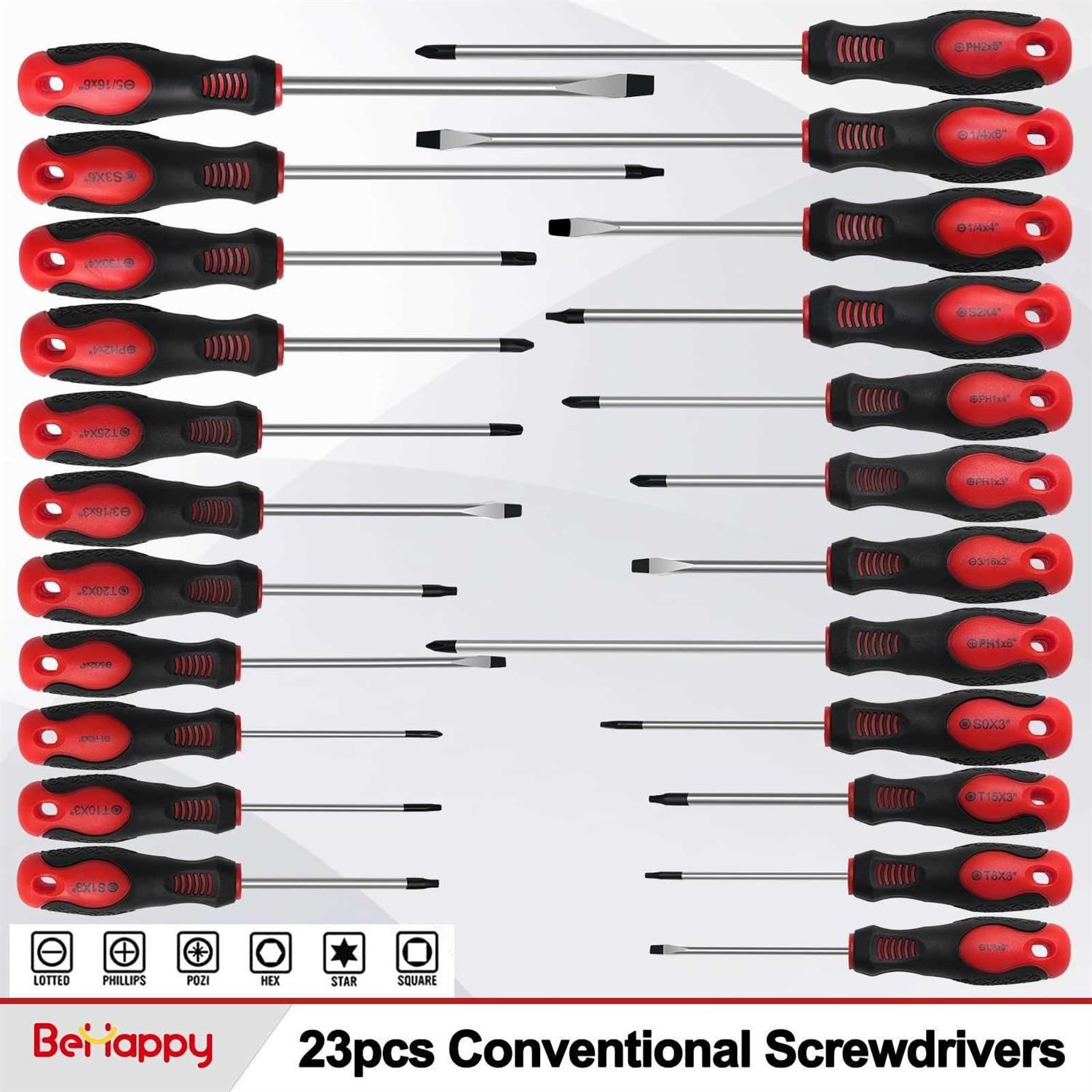 Premium Material: Screwdriver bar is made of quality S2 alloy tool steel, which features high strength, high toughness, wear resistance, corrosion resistance, low-temperature resistance, and high-temperature resistance. The screwdriver tip has a strong magnetic force and it is easy to screw in and take out the screw, also the tip is dealt with a black oxide coating process so as to prevent rust Non-slip design: The grip of this screwdriver set is made of PP and TPR material, is very ergonomic non-slip, and soft handle. the handle can provide you a comfortable and safe use when you’re performing electrical work, preventing you from getting electrocuted if you’re working with live equipment. Wide Usage: The screwdrivers are available for daily fixing work or precise tasks, such as watch repair, electronics, computers, jewelry repair, meter maintenance, furniture repair, and so on. Whether you are a mechanic or a DIY enthusiast, this set is a very practical and cost-effective tool partner. At the same time, it is also a great gift-giving option. Give it to your husband, father, teacher, brother, including any DIY enthusiast. After-sales service: BeHappy is a specialized tool product, buyers satisfaction is our most sought goal. – i Description: /i – — Specification: – 23pcs conventional screwdriver; – 60pcs screwdriver bits; – 8pcs precision screwdrivers; – 6pcs drive socket; – 16pcs hex key; – 2pcs offset screwdrivers; – 1pcs magnetizer demagnetizer; – 1pcs ratchet handle; – 1pcs durable plastic stand. – — Premium Material: quality S2 alloy tool steel – — Non-slip design: grip of is made of PP and TPR material – — Wide Usage: The screwdrivers are available for daily fixing work or precise tasks, such as watch repair, electronics, computers, jewelry repair, meter maintenance, furniture repair, and so on. Whether you are a mechanic or a DIY enthusiast, this set is a very practical and cost-effective tool partner. – –Tools Gifts: It is also a great gift-giving option. Give it to your husband, father, teacher, brother, including any DIY enthusiast. – i Service Guarantee: /i – BeHappy is a specialized tool product, buyers satisfaction is our most sought goal. – “