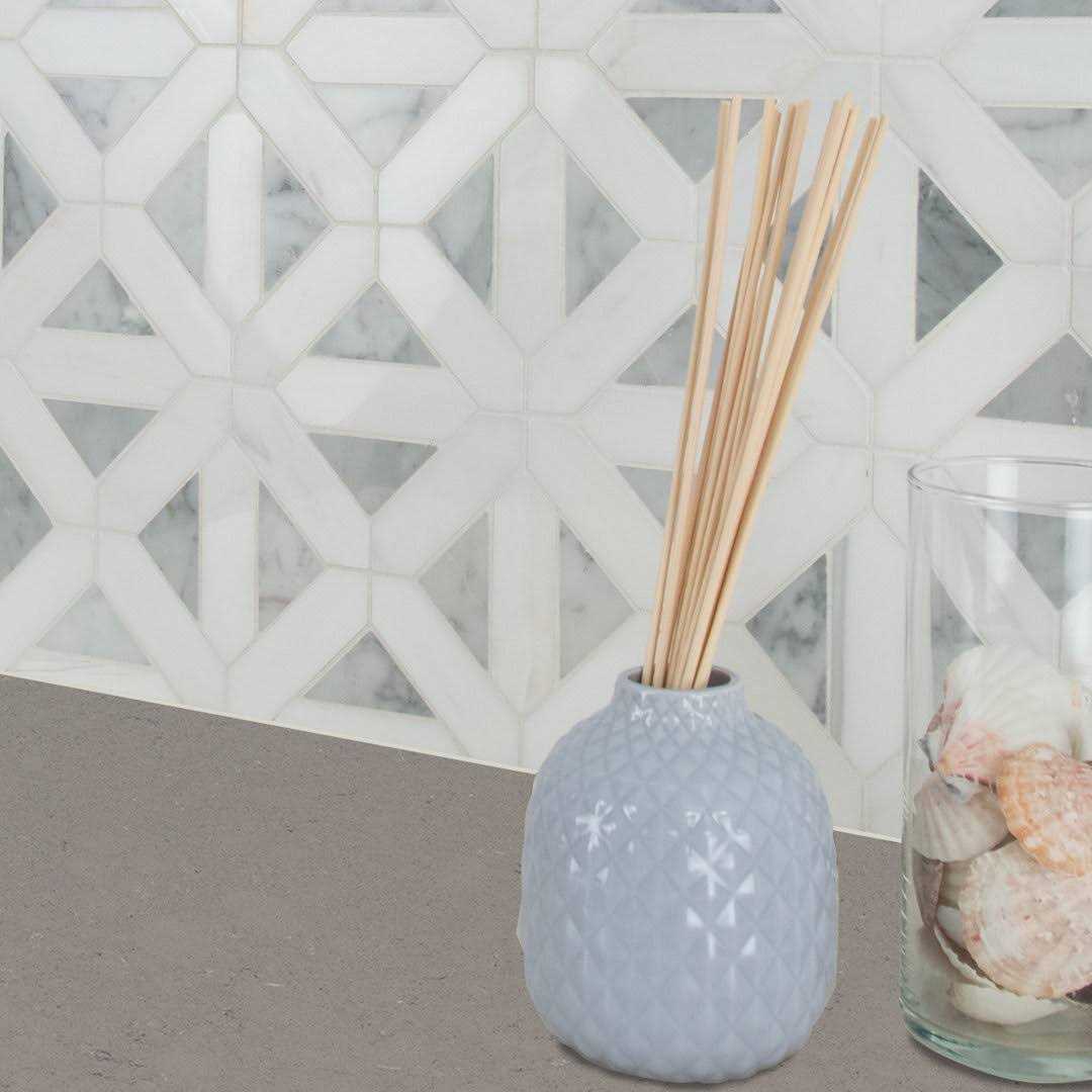 Bianco Dolomite Geometrica natural marble tile takes the timeless natural marble and crafts it into a contemporary pattern, creating a simply stunning combination. These gorgeous tiles are recommended for a wide range of design installations and are suitable to use as both backsplash tile and floor & wall tile. Features a distinct white and grey pattern with a polished finish Made for use on residential and commercial walls Grade 1, natural marble mosaic for floor, wall and countertop use MSIs Bianco Dolomite Geometrica Polished Patterned Mosaic Tile is classic a Turkish marble with a modern edge featuring distinctive, smooth grey veining. Its ideal for creating beautiful kitchen backsplash, shower surrounds, accent walls and other design features throughout homes and light use commercial properties. The timeless shape and color of this patterned marble mosaic make it exceedingly versatile complementing traditional to contemporary design styles. Pair it with a Bianco Dolomite countertop or other mosaics from the collection for a style-savvy cohesive look or use it alone to add a touch of unexpected detail and interest to any space. Tiles are prearranged on 12 in. x 12 in. mesh-backed sheets for simplified installation and coordinating moldings give your project a professional look.