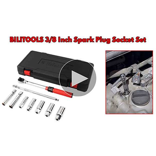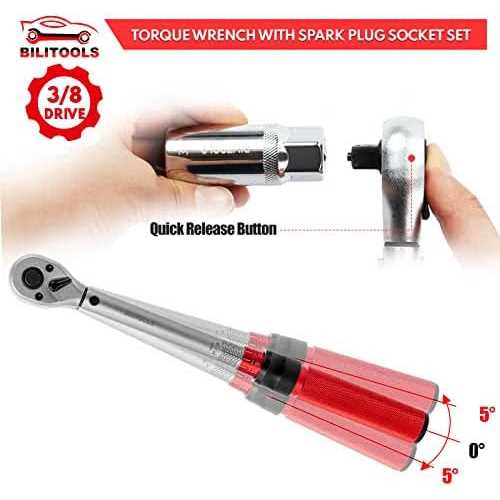 BILITOOLS 9-Piece Spark Plug Socket Set with 3/8 Inch Drive Click Torque Wrench