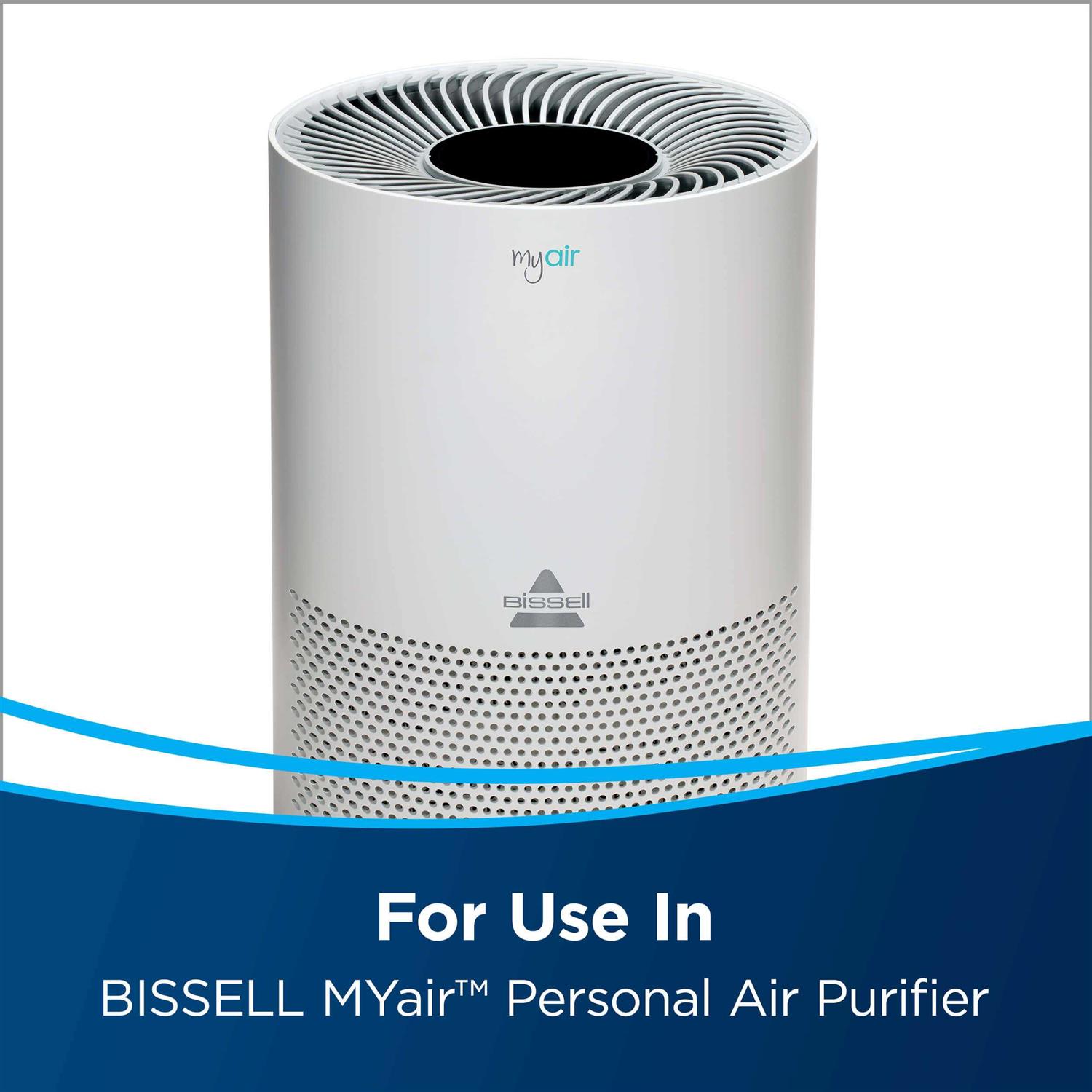 Clear the air when you use this BISSELL MyAir filter with your personal air purifier. The design installs easily in the purifier’s base with the turn of a handle and catches dust, hair and pollen for cleaner air. After 3 months, this BISSELL MyAir filter removes simply with a firm counter-clockwise turn. Compatible with BISSELL MyAir personal air purifier For use with your existing model. Three-in-one: high efficiency, activated carbon, and prefilter Captures 99.7% of 0.3 micron particles or larger, such as pollen, smoke, dander, and dust, in the sleep mode. Easy-to-install design Makes it simple to replace your old filter. Three-month filter life under normal use Allows for extended operation. The indicator on your air purifier informs you when a new filter is needed. Prefilter Keeps large particles and helps extend the life of the filter. Replacement filter You can always have a backup ready when the filter needs to be changed.
