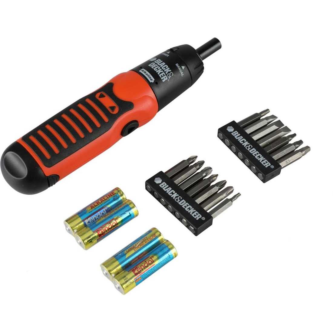 Effortless and convenient, this screwdriver kit from Black & Decker comes with various screwdriver sizes and bits. Now, you do not need to possess those heavy sets of manual screwdrivers that consume a lot of space. Design With modern styling and ergonomic design this tool provides great comfort during use. It is also compact and slim for easy portability and fatigue-free use. Power With its 6 Volt power supply from its four 1.5 Volt batteries, the tool gets enough power for all your quick fixes and light assembly projects. Forward and Reverse Function The forward and reverse function can be used for easy insertion and removal of screws. Whether it is tightening the hinges of your cupboard door or taking apart furniture, everything can be done in a jiffy. Spindle Lock With the spindle lock feature you can change drill bits with ease. It also provides additional grip to the bits while the tool is in application.