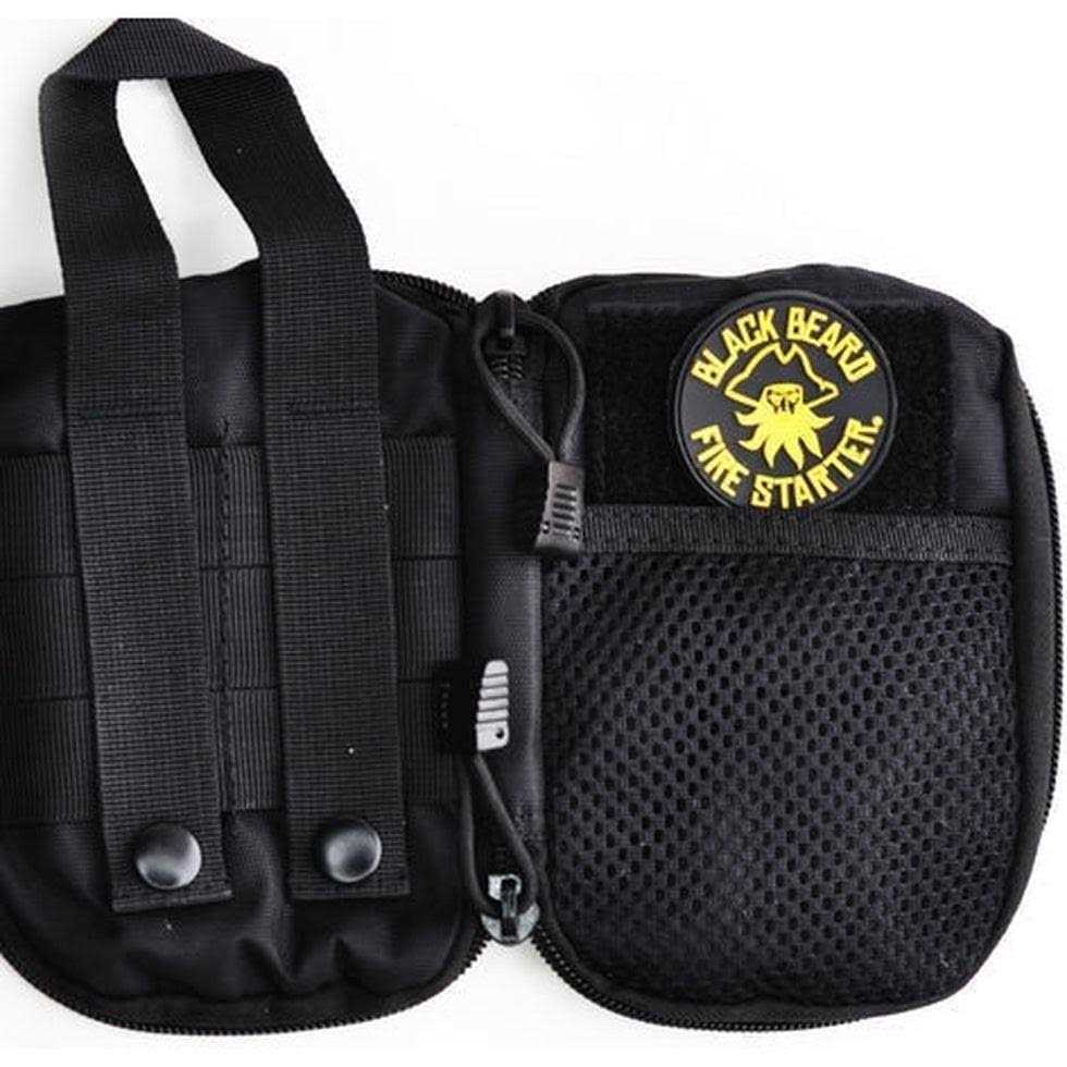 The Black Beard Fire Starter Captain’s Loot Kit gives you the tools that you need to start a fire in a tough, zippered organizer case. The interior of the case has two slip-pockets, elastic organizers and a swivel clip, and the exterior of the case has a mesh pocket with a Velcro closure, a MOLLE panel and a carrying handle. Neatly stored inside the kit are three Fire Starters, which are fully dried and braided cotton rope infused with a special blend of odorless, non-toxic waxes and oils. They are waterproof, will never evaporate, deteriorate or dissipate and are designed to light up every time. One of the best features of these firestarters are that they don’t have an expiration date opened or unopened. Also secured inside is a 5”x 1/2” Ferro Rod that provides up to 5,000-degree sparks in all weather, at any altitude. Extremely durable and reliable, it’s good for up to 20,000 strikes and almost six-feet of paracord is attached to rod.