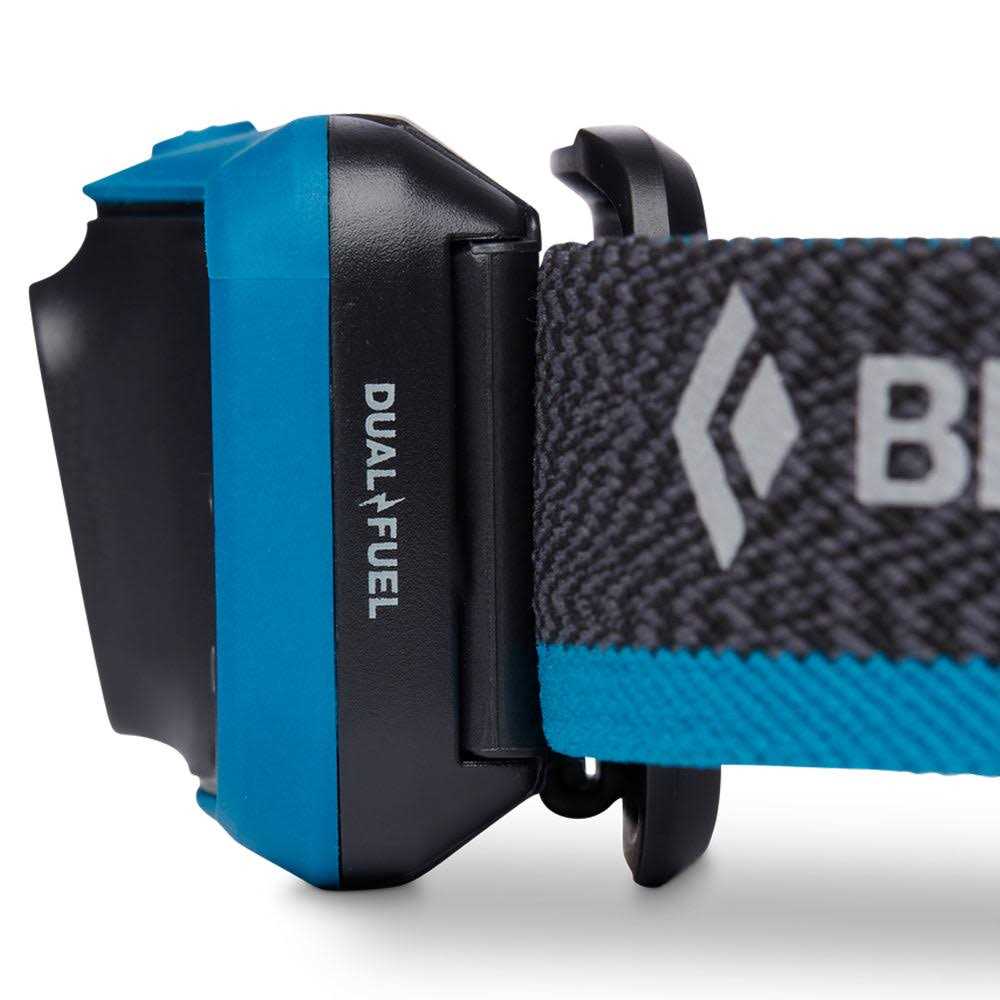 For multi-use camping, power outages in the ‘burbs and low-key adventures, the Black Diamond Cosmo 350 Headlamp delivers dependable light in a sleek, full-featured package. Plus, its dual-battery operation gives users a confident backup when power sources are scarce. Duel-fuel technology for maximum flexibility to utilize either the rechargeable Lithium Ion battery or AAA batteries. BD 1500 Lithium Ion Rechargeable sold separately; includes three AAAs. Multifaceted optical lens design emits up to 350 lumens on high setting. Settings include dimming, strobe, red night-vision and lock mode. Red night vision has dimming and strobe modes and is quickly activated with dual-button interface. Housing tilts so you can adjust the angle of the beam. Adjustable headband for a secure fit and padding behind the housing for additional comfort. Features a digital lock-out to ensure the headlamp doesn’t drain in your pack plus an integrated battery meter that shows the percentage of power remaining. The IPX8 waterproof housing protects against rain, splash, and immersion down to one meter (3.3 feet) for 30 minutes.
