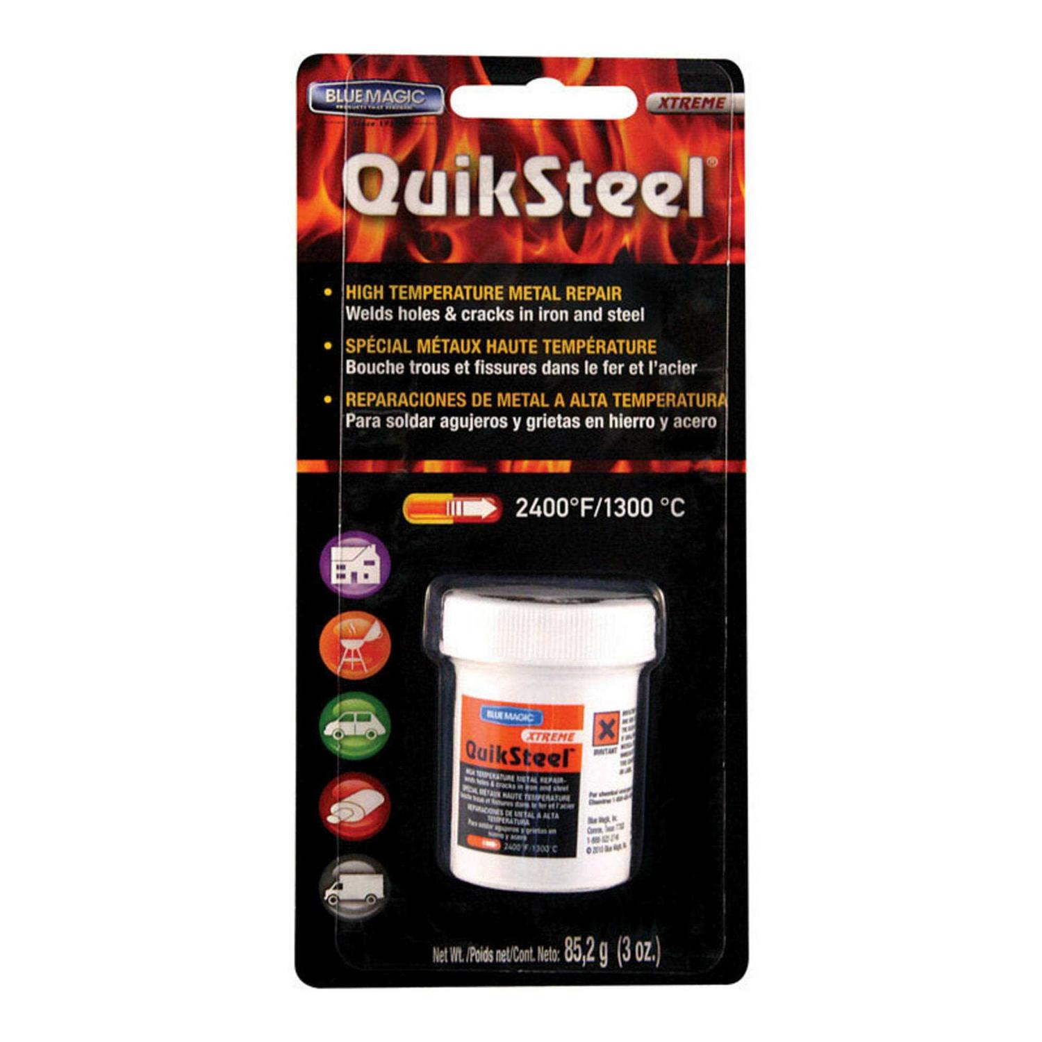 Quik Steel high temperature repair kit fills cracks and pits. Will withstand direct flame and strength increases with heat. Repairs furnaces, barbeques or any high heat item, withstands temperatures of 2400 degrees Fahrenheit. Comes in easy to use and store 3 ounce container.