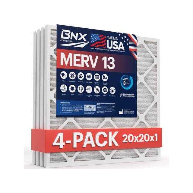 BNX 20x20x1 MERV 13 Air Filter 4 Pack – Made in USA – Electrostatic Pleated Air Conditioner HVAC AC Furnace Filters – Removes Pollen, Mold, Bacteria