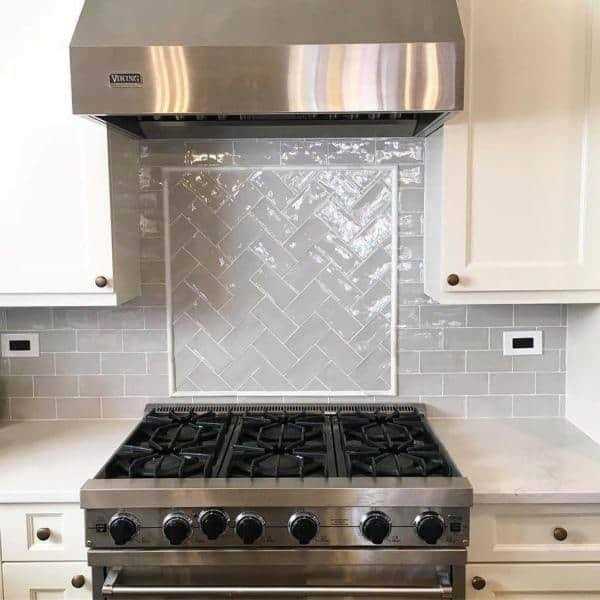 Lancaster 3×6 Dove Ceramic Tile The beauty and timelessness of subway tile comes alive in the luxe Lancaster Collection. Made of ceramic these magazine-worthy tiles stun in any space they’re placed. They have an almost handmade feel thanks to their textured bodies and high-shine finish. Whether you use the Lancaster Bianco Tile as a shower wall tile or the Lancaster Open Seas Tile as a kitchen backsplash the design outcome is sure to delight you. With unmatched versatility you can create seemingly endless patterns with this tile think off-set or eye-captivating chevron. The unique appearance of these tiles create a trendy timeless and high-end ambiance. Available in 7 color options 2 sizes and a deco format. “Great subway tile with a handmade look!” The Dove tile in a traditional herringbone pattern above the range looks awesome.
