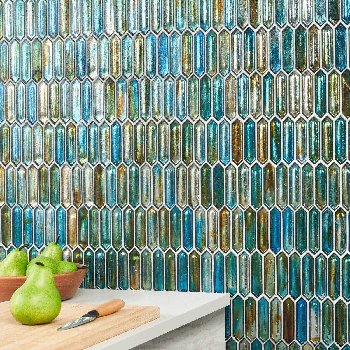 Boldly be a POP of color in a black and white world. Platinum Sage glass, formatted in a unique elongated hexagon pattern, provides a fun, vivid way to add a vibrant splash to a wide variety of settings and surroundings within your home. The perfect choice for any backsplash or accent wall project, punches of color keep a room feeling youthful and engaging, while also adding a visual dimension that shifts endlessly with the play of light and shadow. Color: Tropical Lagoon.